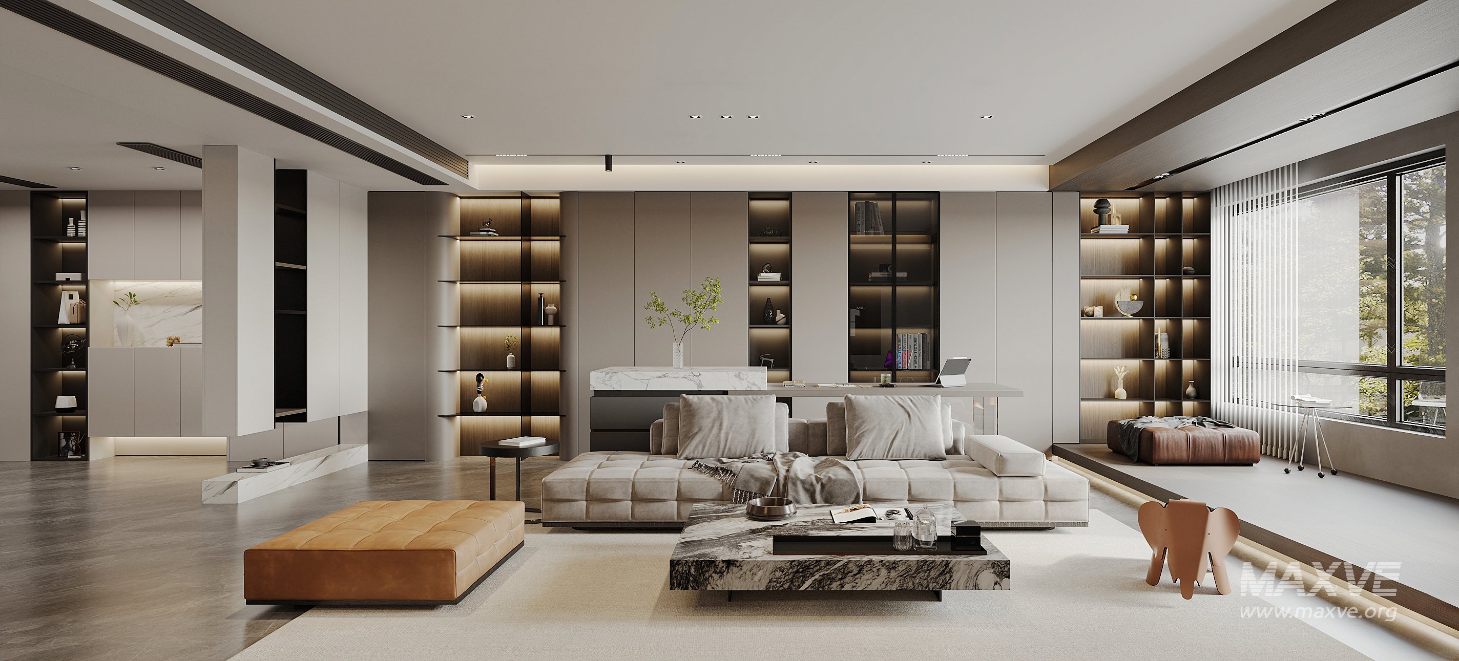 This Modern living room and dining room interior scene 3D scene was built in 3ds Max 2021 and rendered using Corona. It includes clean geometry, proper scene organization, and is optimized for smooth rendering performance. The model setup follows standard practices, making it easy to import and adapt into a variety of workflows. Delivered in MAX format, it is well-suited for architectural visualization, concept development, or design presentation. Dominant color tones include: White tones, Beige tones, Gray tones.