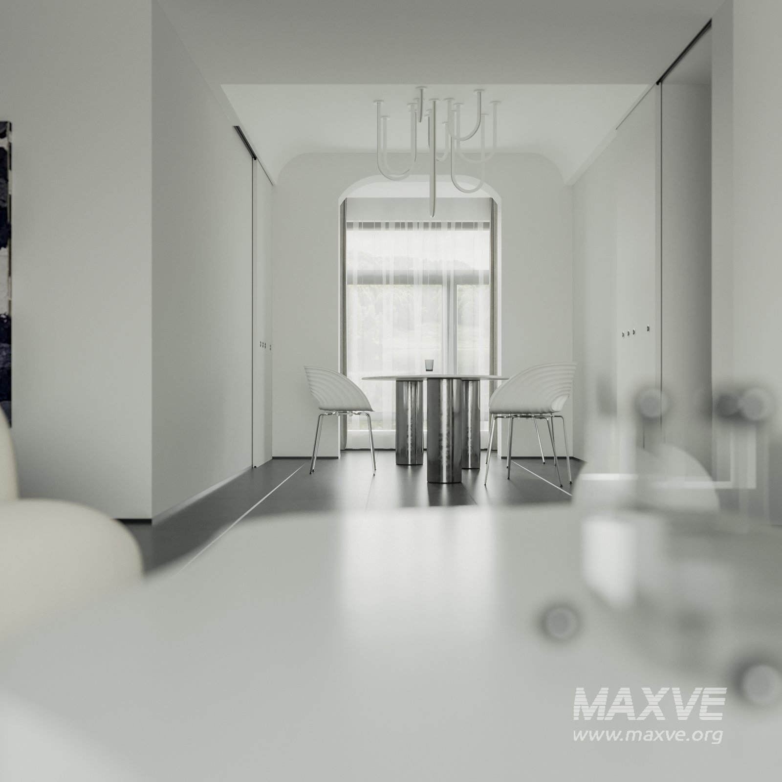 This Modern living room and dining room interior scene 3D scene was built in 3ds Max 2021 and rendered using Corona. It includes clean geometry, proper scene organization, and is optimized for smooth rendering performance. The model setup follows standard practices, making it easy to import and adapt into a variety of workflows. Delivered in MAX format, it is well-suited for architectural visualization, concept development, or design presentation. Dominant color tones include: White tones, Silver tones.