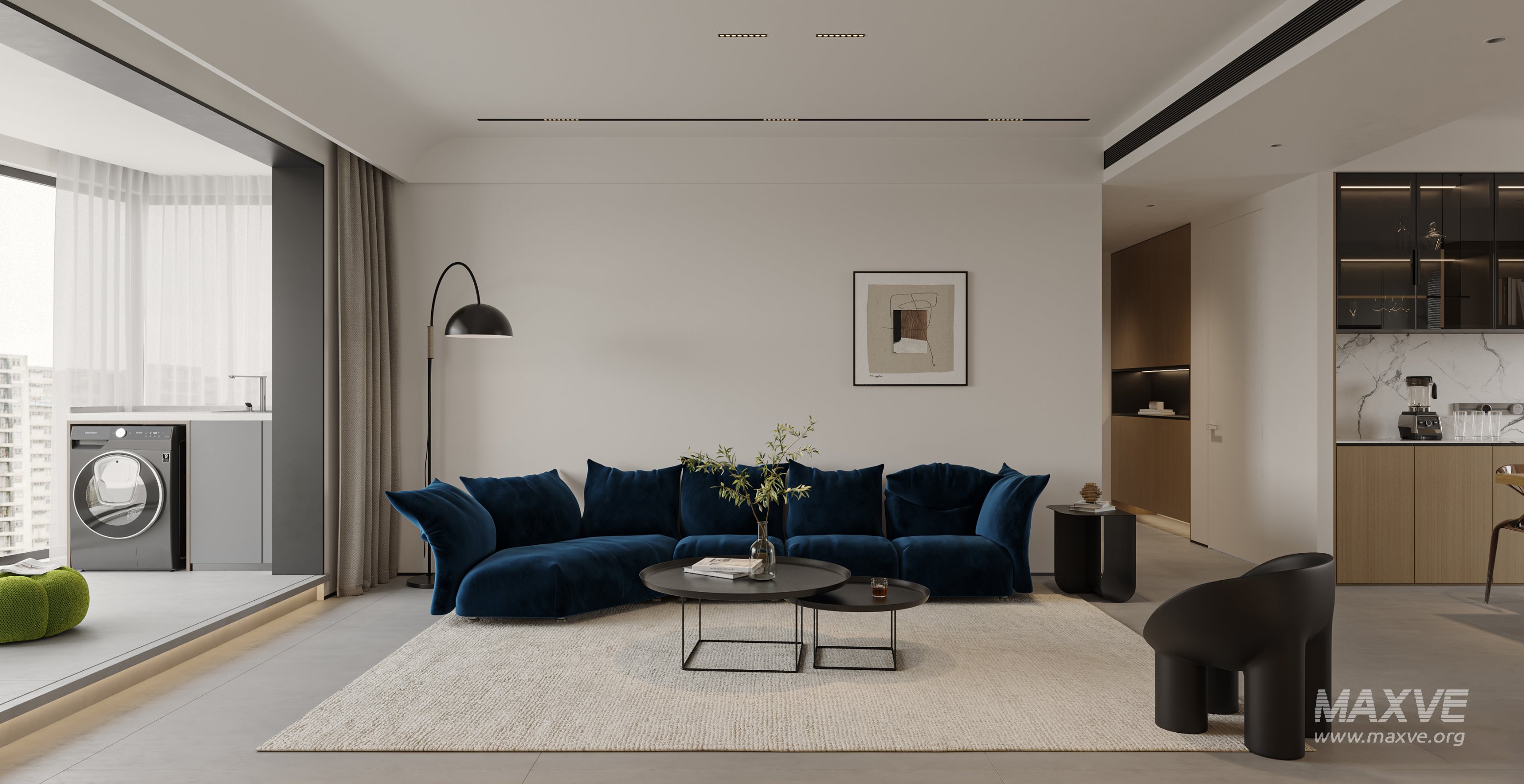 This Modern living room and dining room interior scene 3D scene was built in 3ds Max 2021 and rendered using Corona. It includes clean geometry, proper scene organization, and is optimized for smooth rendering performance. The model setup follows standard practices, making it easy to import and adapt into a variety of workflows. Delivered in MAX format, it is well-suited for architectural visualization, concept development, or design presentation. Dominant color tones include: White tones, Beige tones.