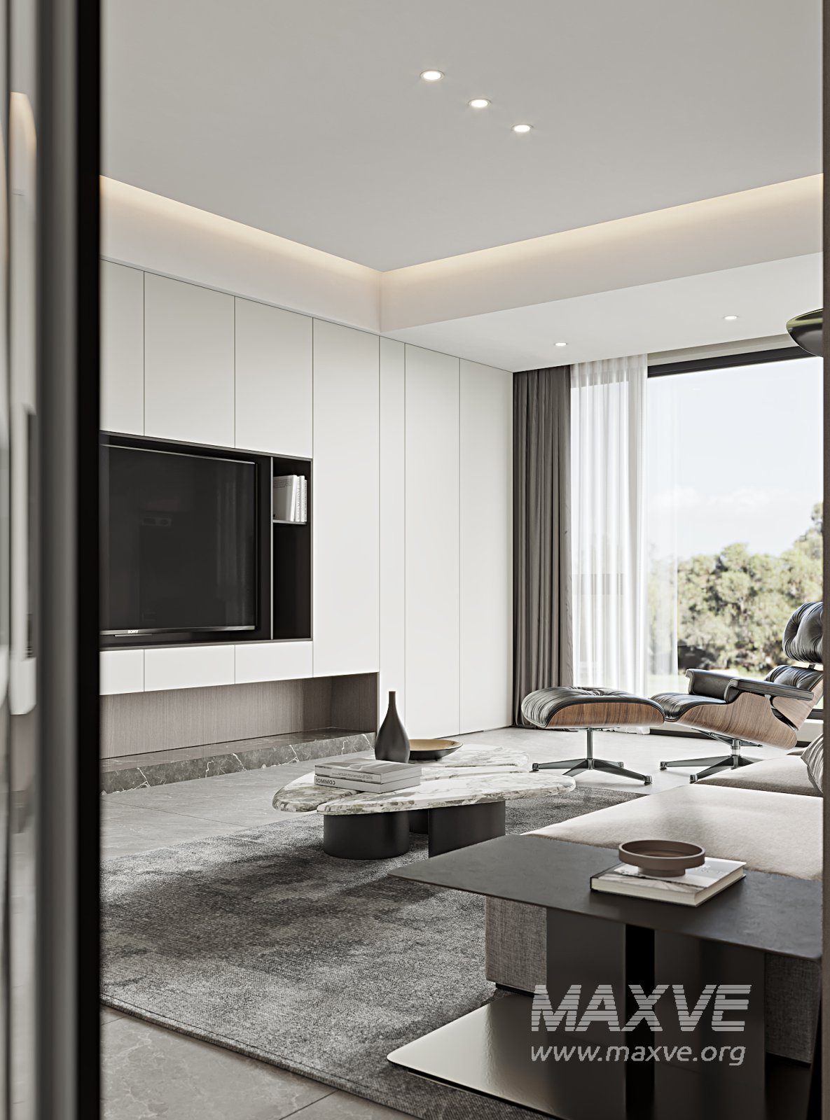 This Modern living room and dining room interior scene 3D scene was built in 3ds Max 2021 and rendered using Corona. It includes clean geometry, proper scene organization, and is optimized for smooth rendering performance. The model setup follows standard practices, making it easy to import and adapt into a variety of workflows. Delivered in MAX format, it is well-suited for architectural visualization, concept development, or design presentation. Dominant color tones include: White tones, Beige tones, Gray tones.