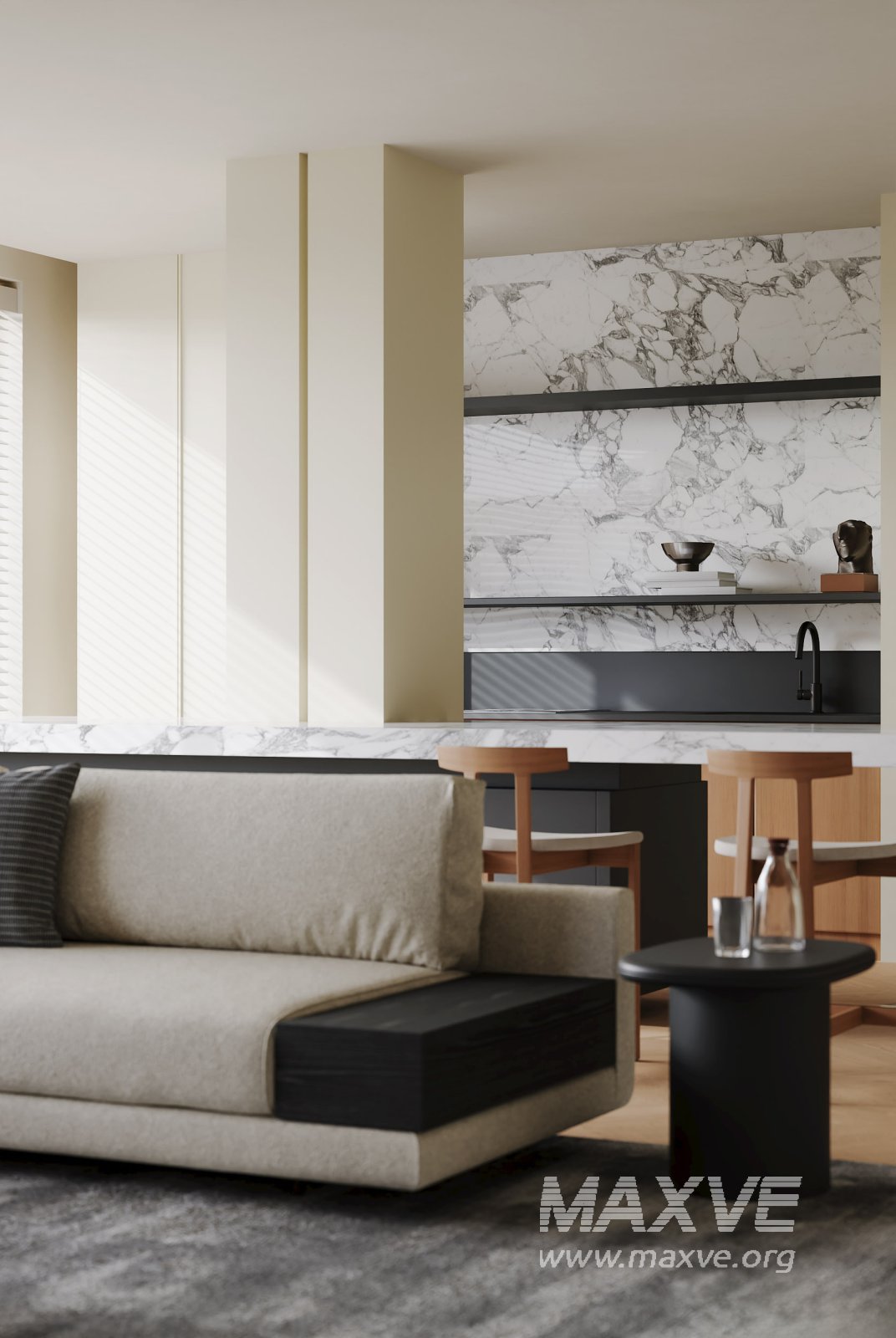 This Modern living room and dining room interior scene 3D scene was built in 3ds Max 2021 and rendered using Corona. It includes clean geometry, proper scene organization, and is optimized for smooth rendering performance. The model setup follows standard practices, making it easy to import and adapt into a variety of workflows. Delivered in MAX format, it is well-suited for architectural visualization, concept development, or design presentation. Dominant color tones include: White tones, Beige tones, Silver tones, Gray tones.