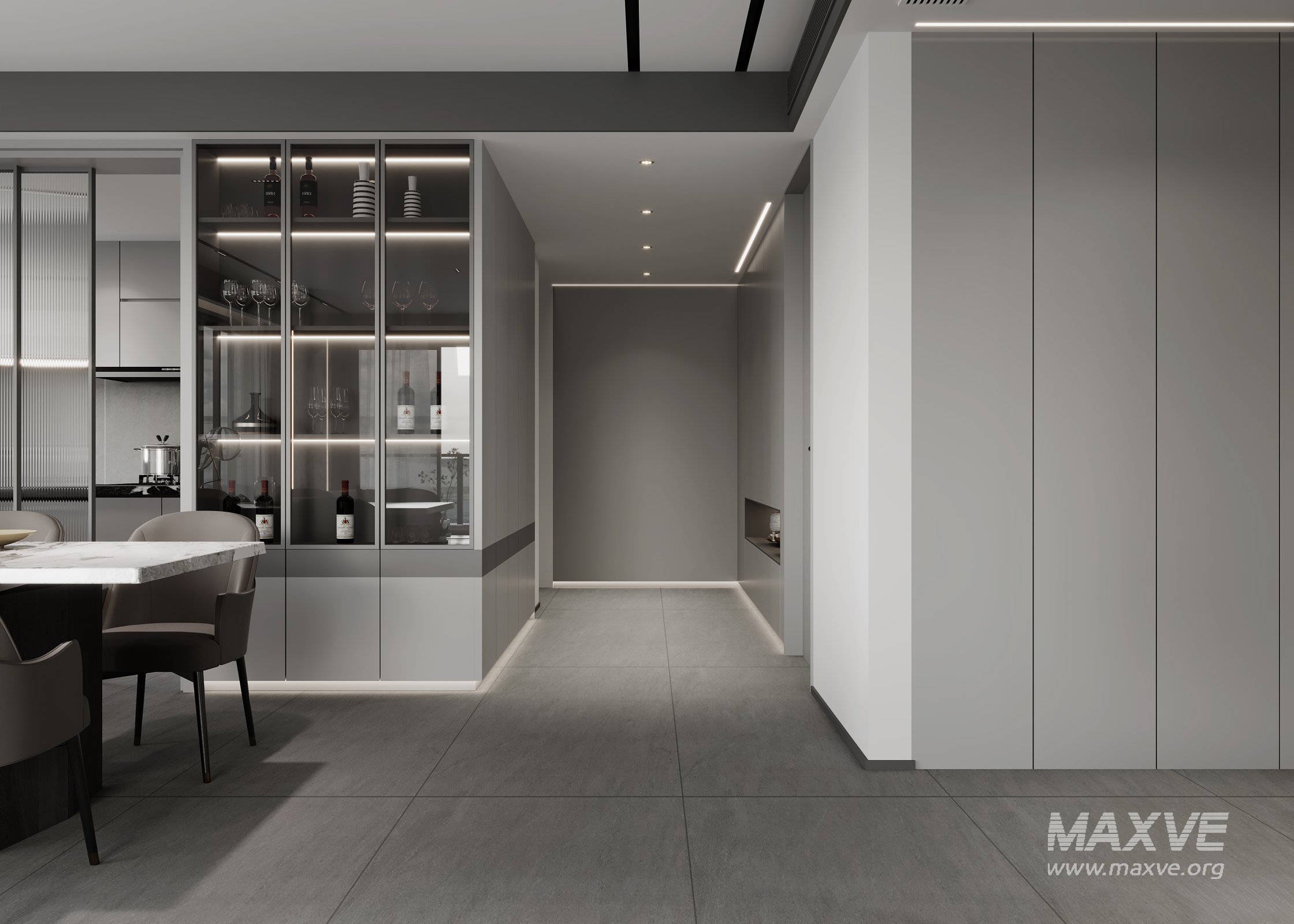 This Modern living room and dining room interior scene 3D scene was built in 3ds Max 2021 and rendered using Corona. It includes clean geometry, proper scene organization, and is optimized for smooth rendering performance. The model setup follows standard practices, making it easy to import and adapt into a variety of workflows. Delivered in MAX format, it is well-suited for architectural visualization, concept development, or design presentation. Dominant color tones include: White tones, Beige tones, Silver tones.