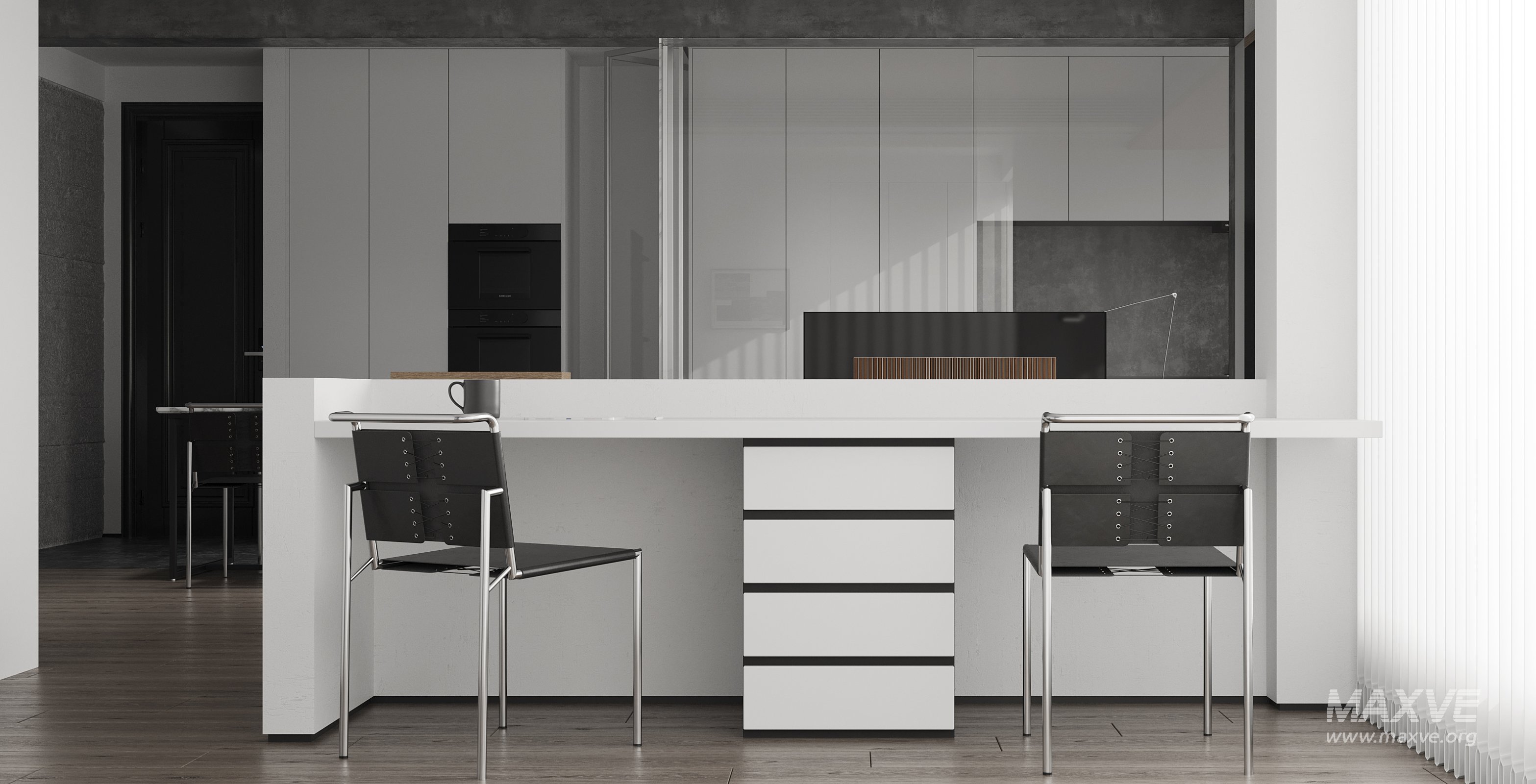 This Modern living room and dining room interior scene 3D scene was built in 3ds Max 2021 and rendered using Corona. It includes clean geometry, proper scene organization, and is optimized for smooth rendering performance. The model setup follows standard practices, making it easy to import and adapt into a variety of workflows. Delivered in MAX format, it is well-suited for architectural visualization, concept development, or design presentation. Dominant color tones include: White tones, Beige tones, Silver tones.