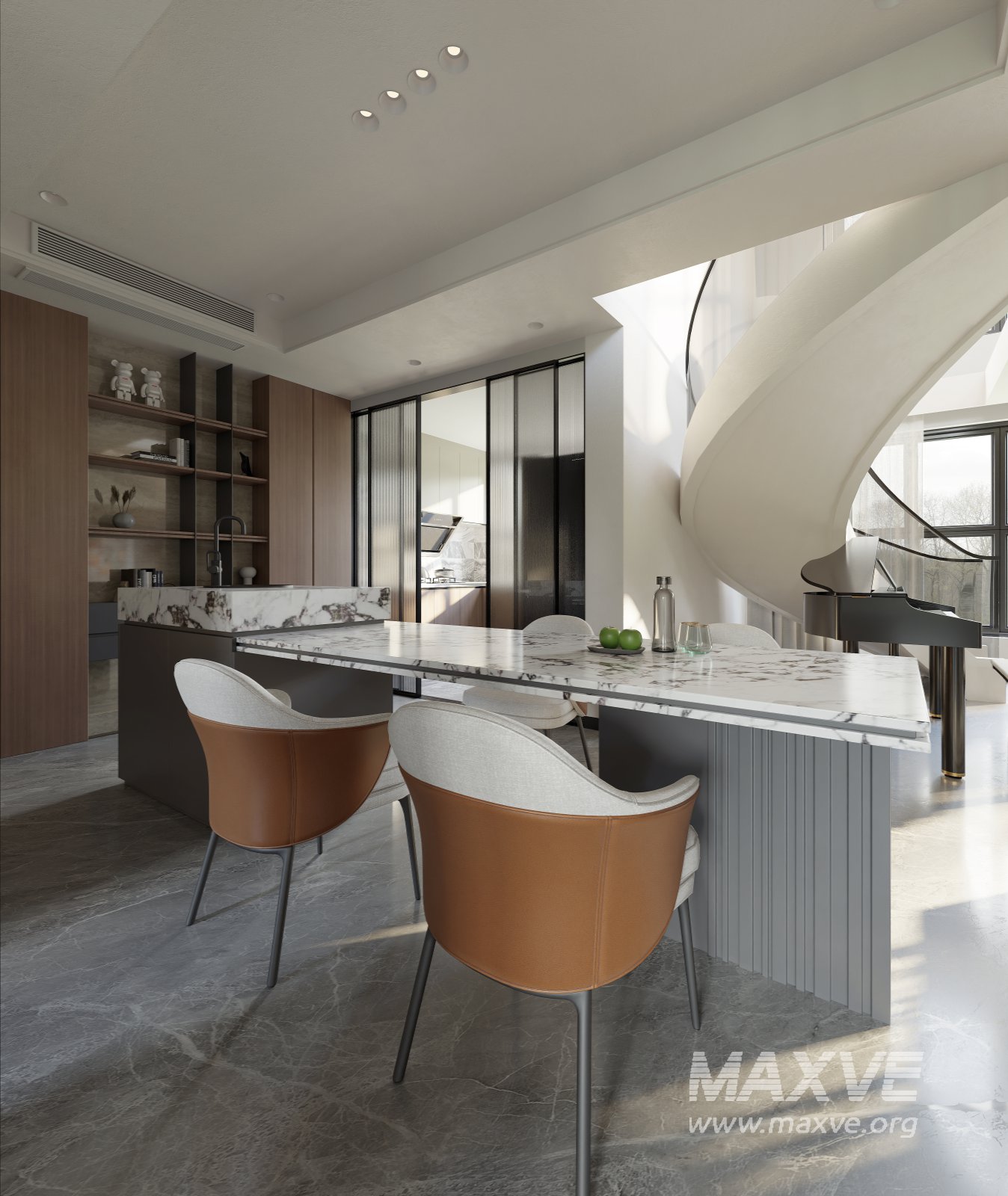 This Modern living room and dining room interior scene 3D scene was built in 3ds Max 2022 and rendered using Corona. It includes clean geometry, proper scene organization, and is optimized for smooth rendering performance. The model setup follows standard practices, making it easy to import and adapt into a variety of workflows. Delivered in MAX format, it is well-suited for architectural visualization, concept development, or design presentation. Dominant color tones include: White tones, Orange tones, Beige tones, Gray tones.