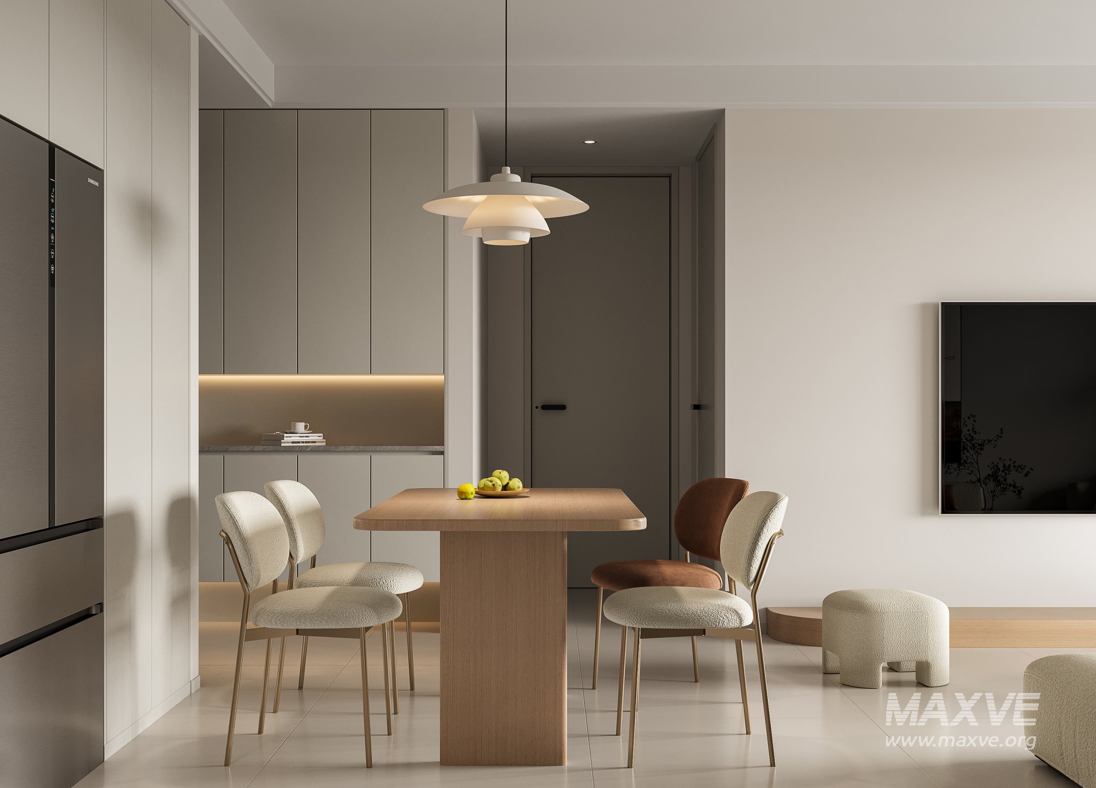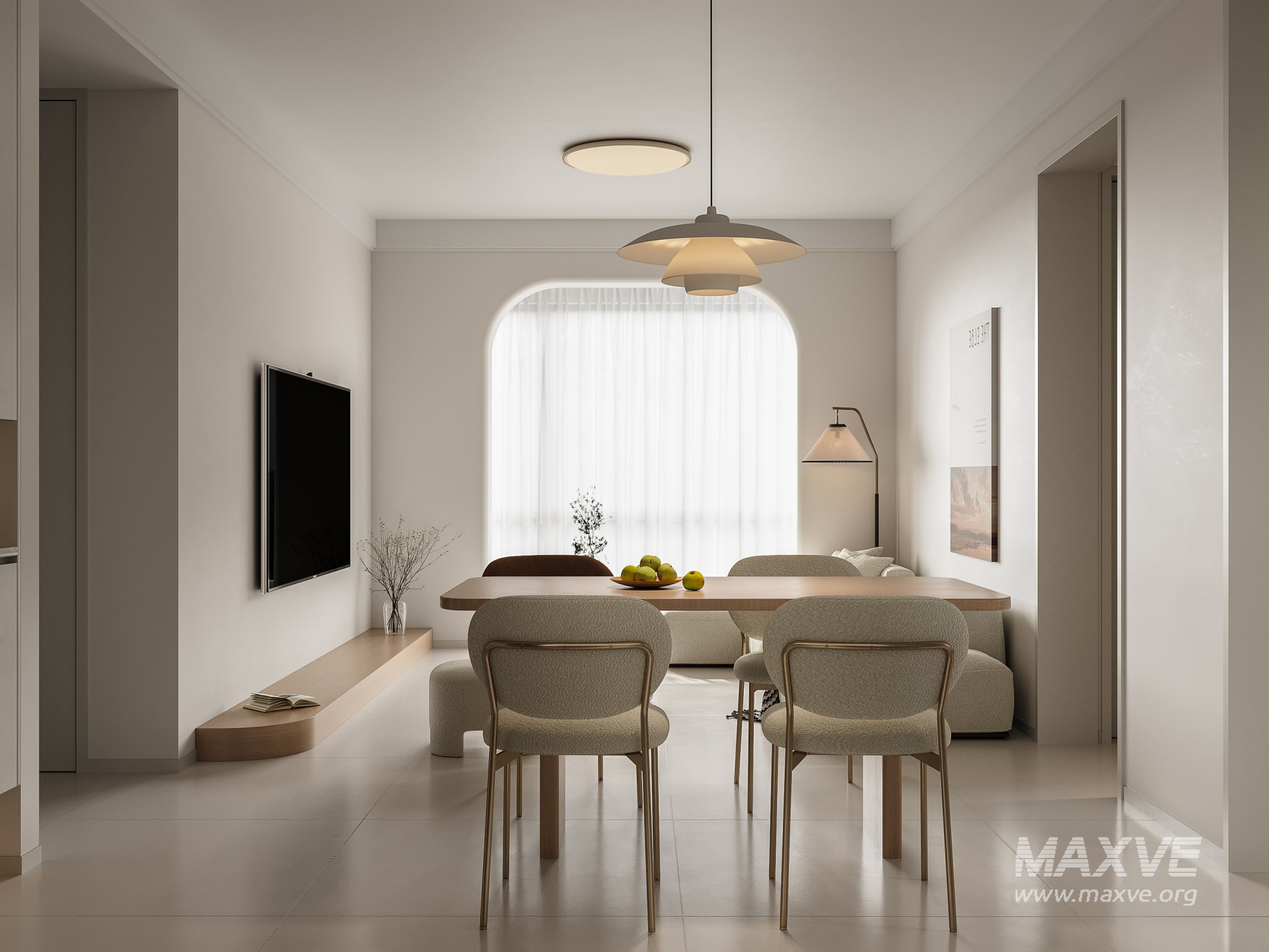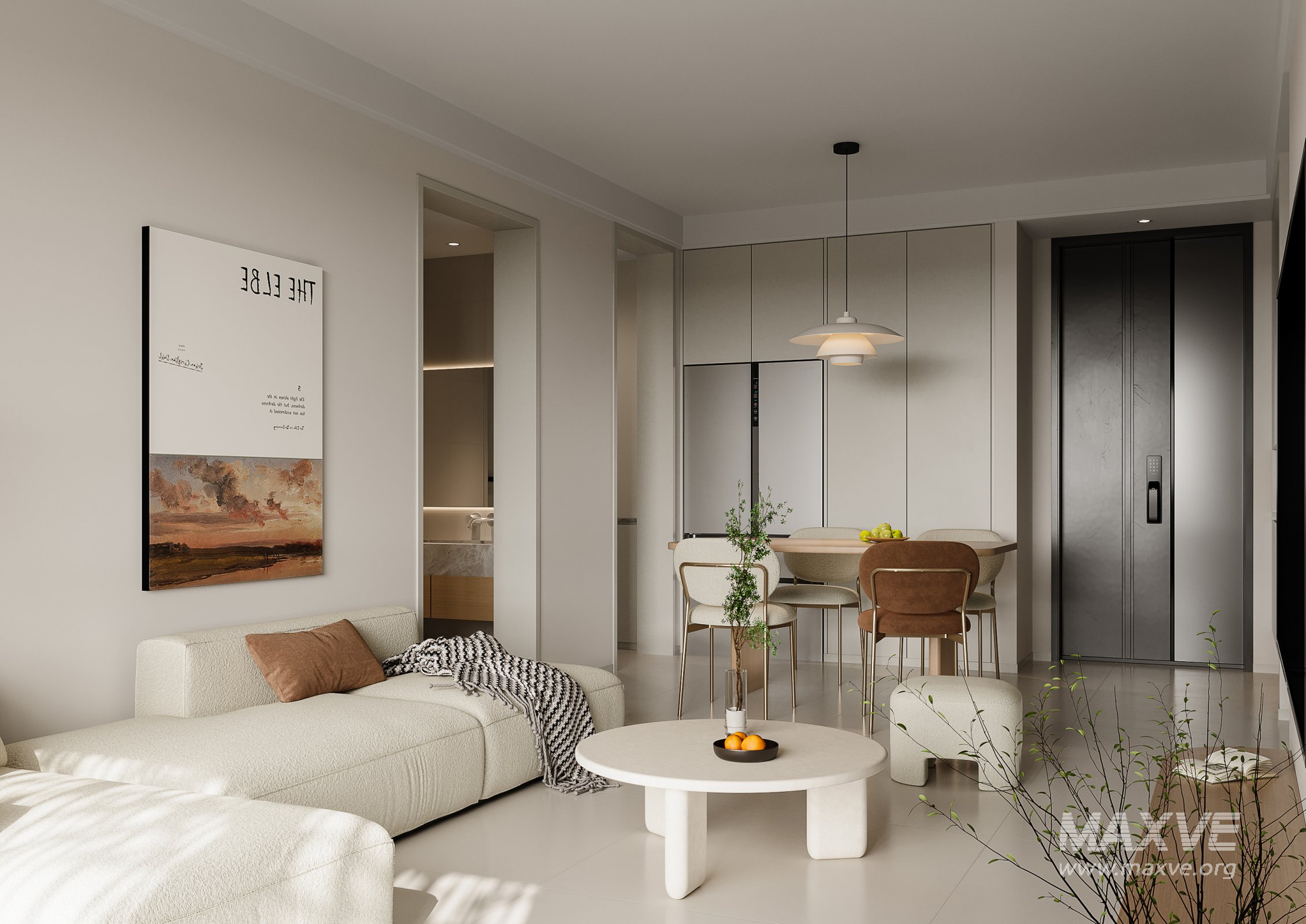 This Modern living room and dining room interior scene 3D scene was built in 3ds Max 2021 and rendered using Corona. It includes clean geometry, proper scene organization, and is optimized for smooth rendering performance. The model setup follows standard practices, making it easy to import and adapt into a variety of workflows. Delivered in MAX format, it is well-suited for architectural visualization, concept development, or design presentation. Dominant color tones include: White tones, Beige tones, Silver tones.
