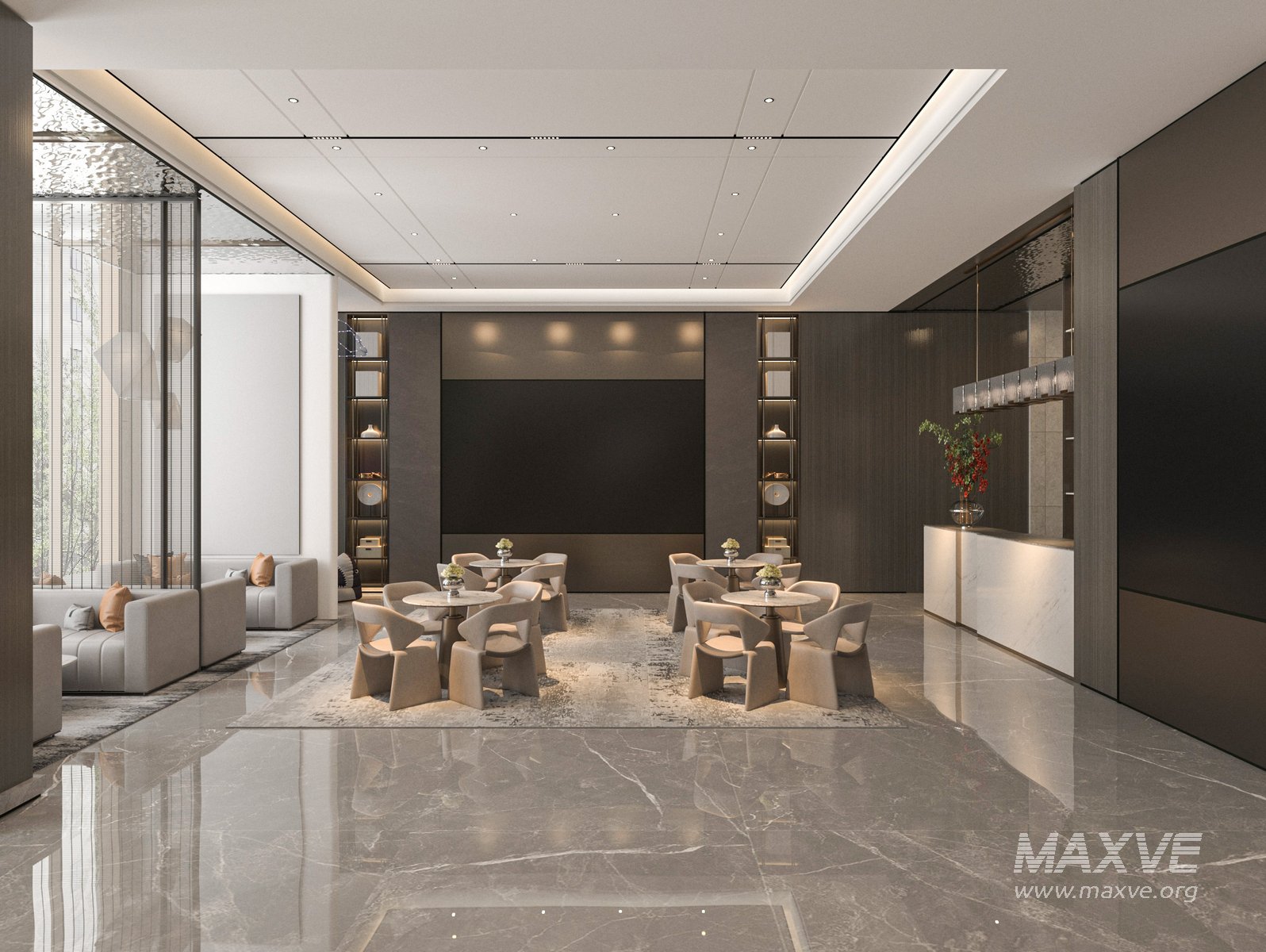 This Modern lobby 3D scene was built in 3ds Max 2018 and rendered using Vray. It includes clean geometry, proper scene organization, and is optimized for smooth rendering performance. The model setup follows standard practices, making it easy to import and adapt into a variety of workflows. Delivered in MAX format, it is well-suited for architectural visualization, concept development, or design presentation.