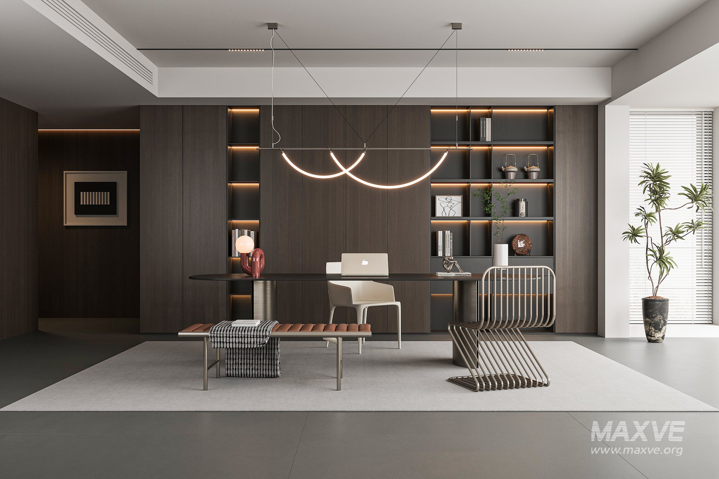 This Modern office 3D scene was built in 3ds Max 2018 and rendered using Vray. It includes clean geometry, proper scene organization, and is optimized for smooth rendering performance. The model setup follows standard practices, making it easy to import and adapt into a variety of workflows. Delivered in MAX format, it is well-suited for architectural visualization, concept development, or design presentation.