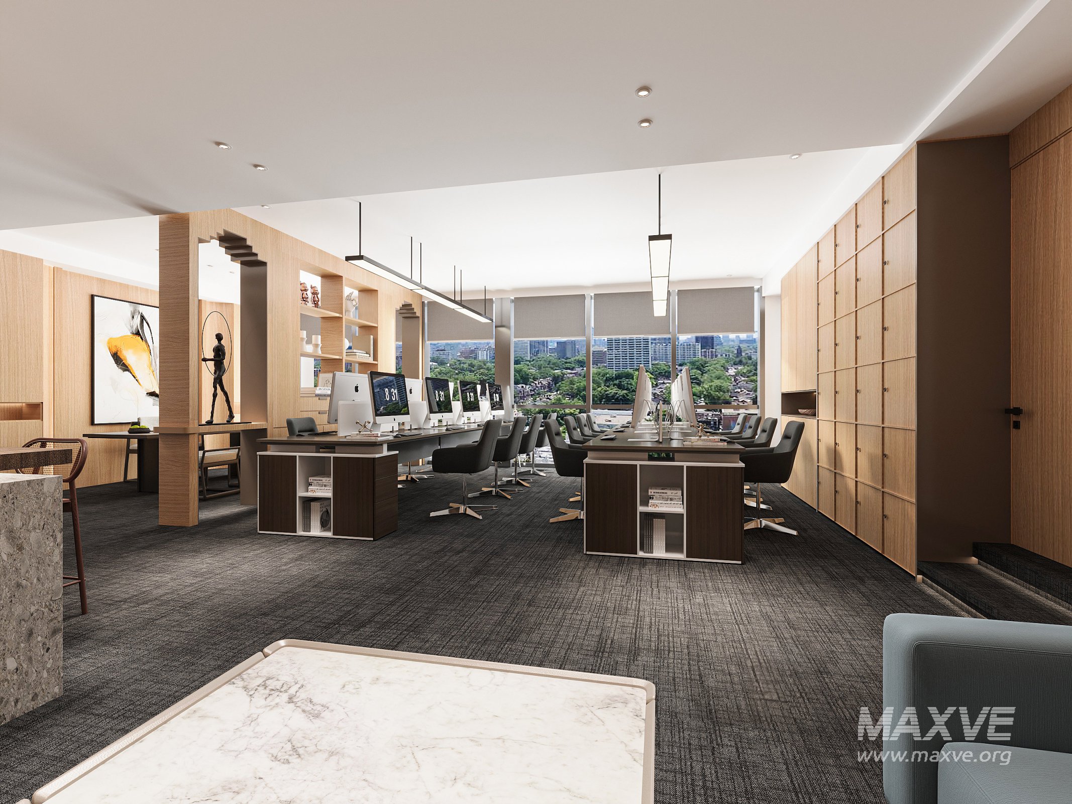 This Modern office 3D scene was built in 3ds Max 2018 and rendered using Vray. It includes clean geometry, proper scene organization, and is optimized for smooth rendering performance. The model setup follows standard practices, making it easy to import and adapt into a variety of workflows. Delivered in MAX format, it is well-suited for architectural visualization, concept development, or design presentation.