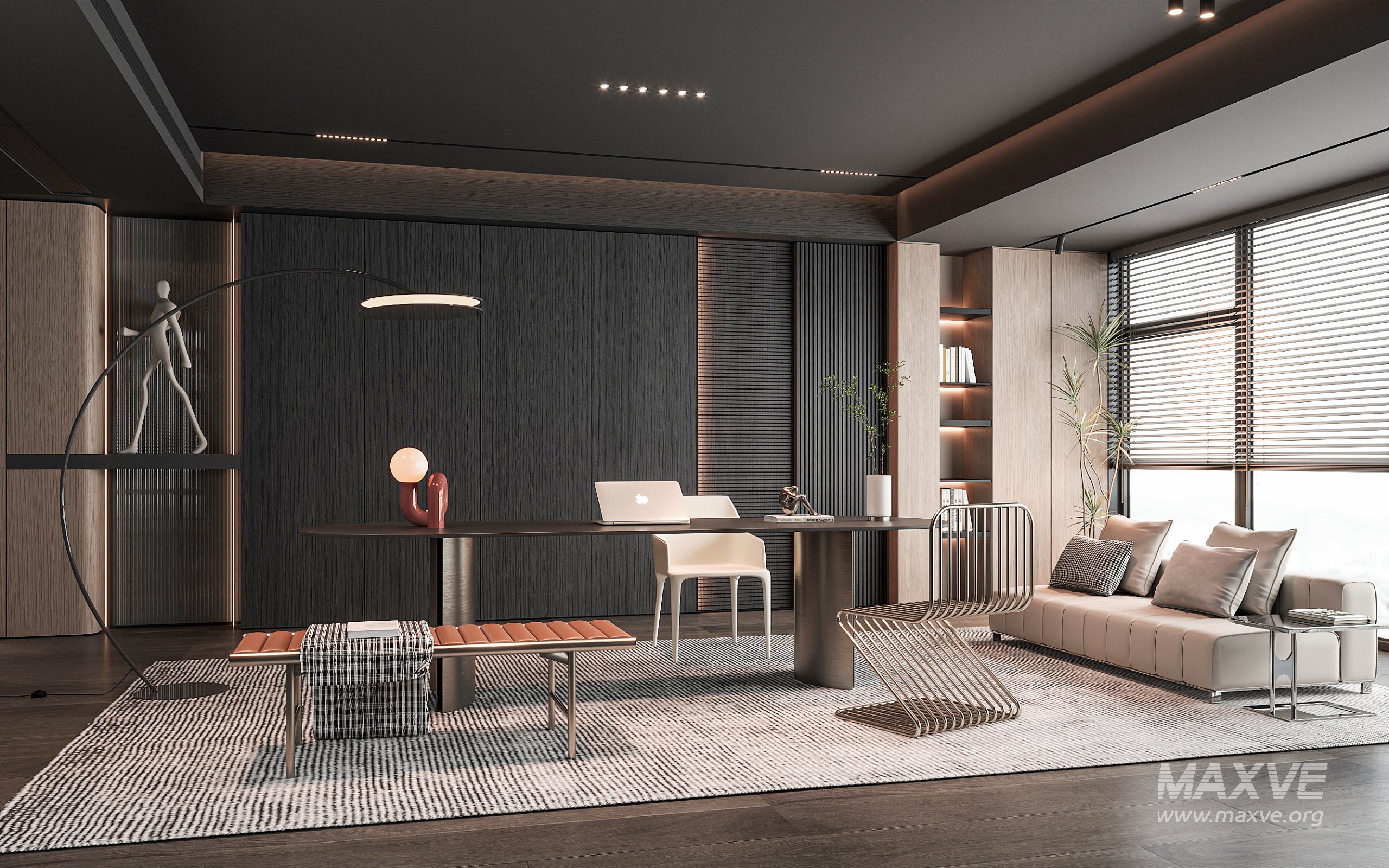 This modern office 3D scene was built in 3ds Max 2018 and rendered using Vray. It includes clean geometry, proper scene organization, and is optimized for smooth rendering performance. The model setup follows standard practices, making it easy to import and adapt into a variety of workflows. Delivered in MAX format, it is well-suited for architectural visualization, concept development, or design presentation.