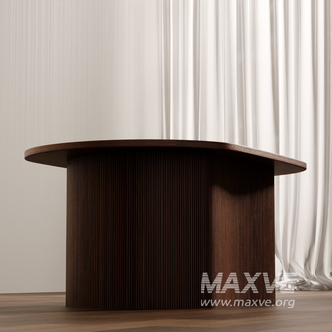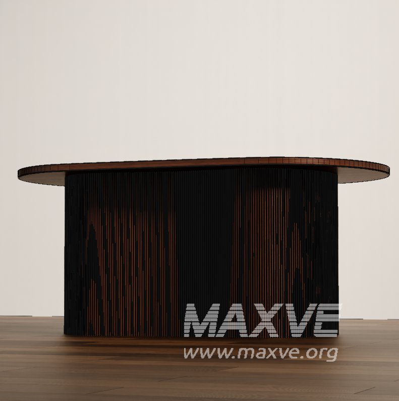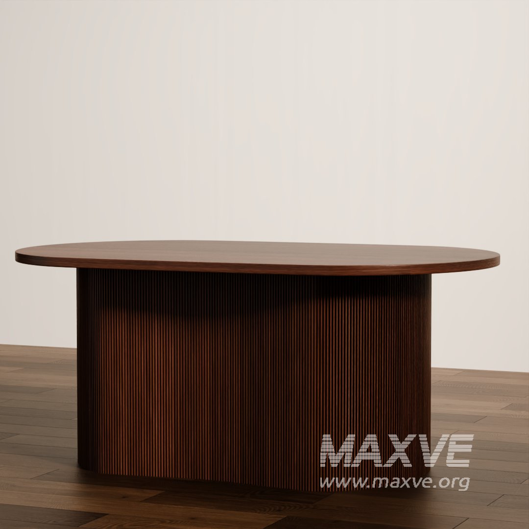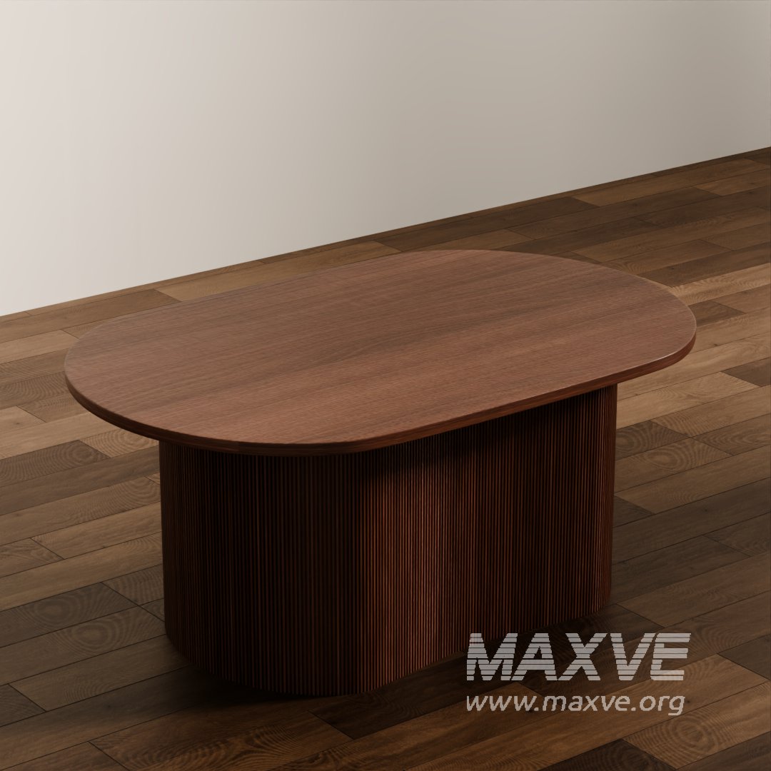 This high-quality 3D model features a modern oval coffee table crafted with a vertically slatted wood base and a smooth, minimalist tabletop. Ideal for contemporary interior scenes, this design blends natural wood aesthetics with a clean silhouette, perfect for upscale living rooms, lounge spaces, or commercial interiors.