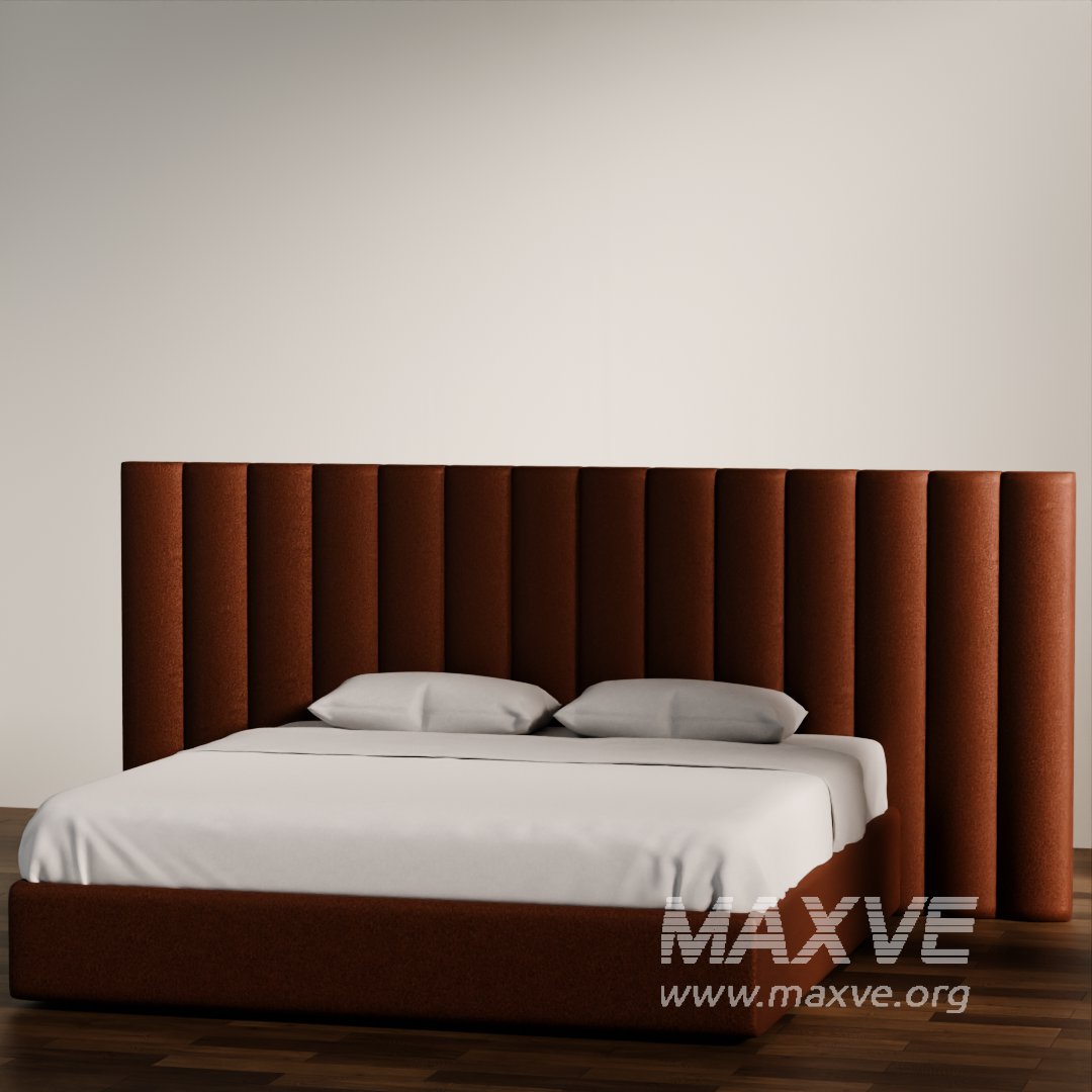 This is a high-quality, Blender-native 3D model of a modern upholstered bed with a tall vertical panel headboard. Designed for realistic interior renders, this piece adds a premium and cozy vibe to any bedroom scene.