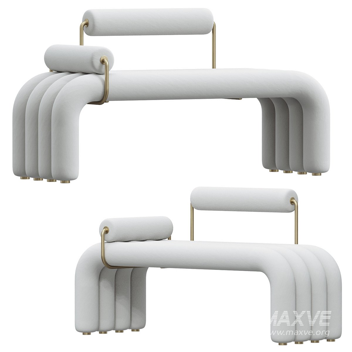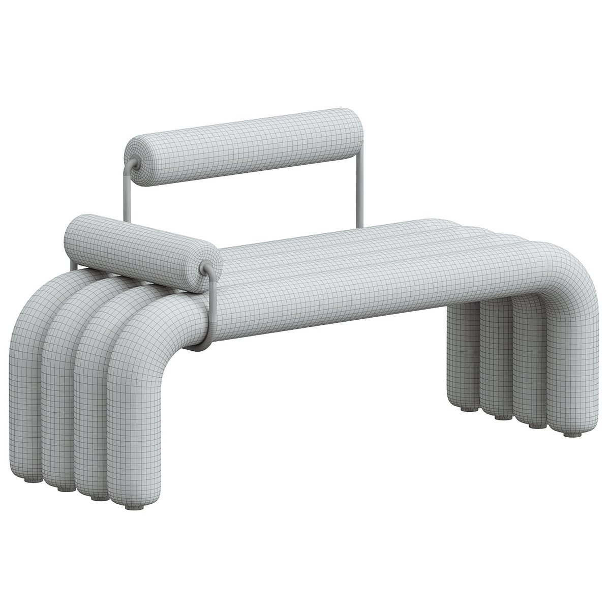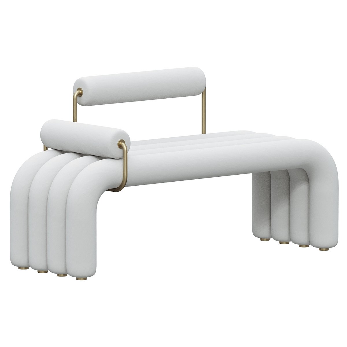 Modern White Line Tufted Bench