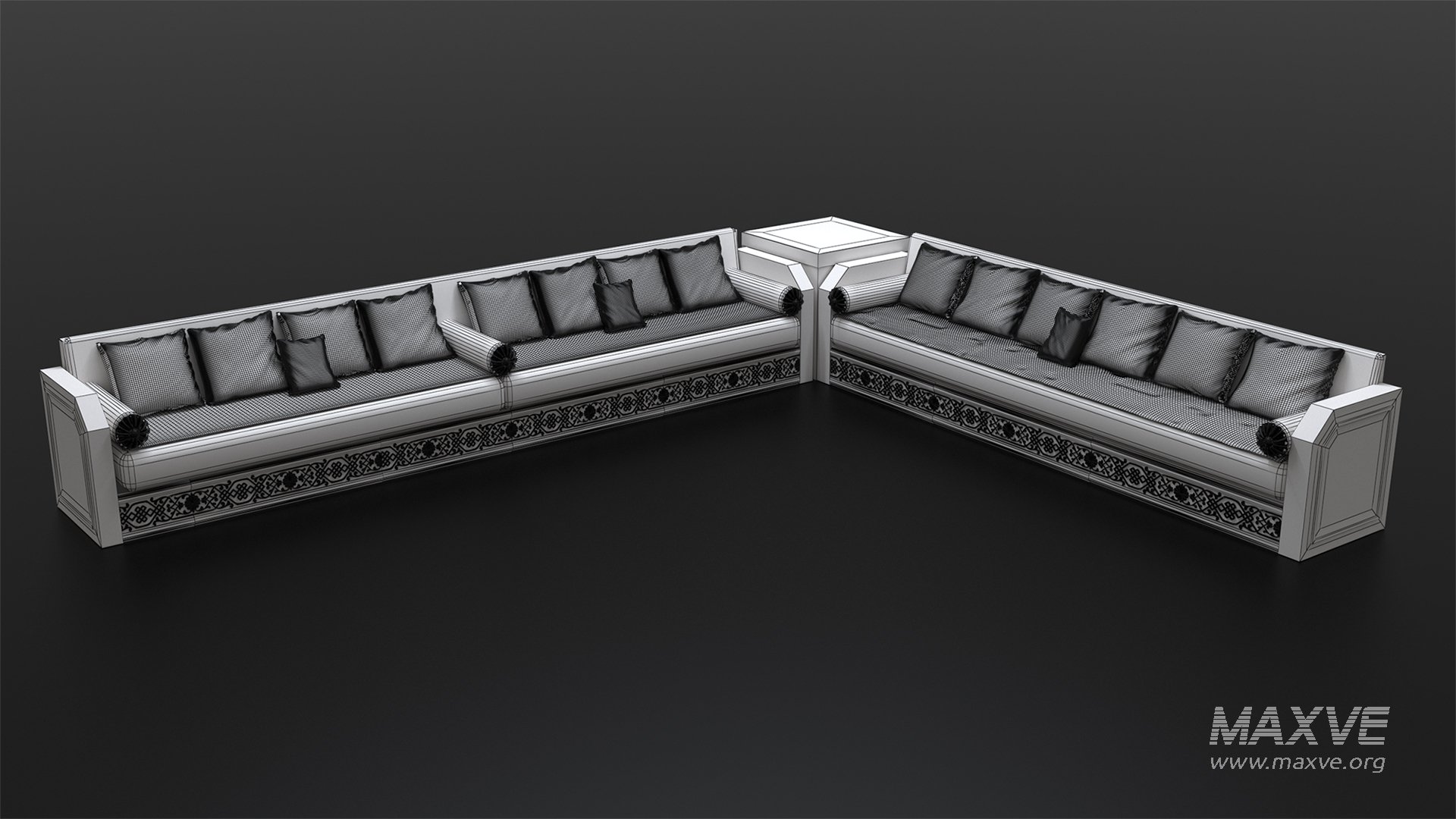 Moroccan sofa set with highly detailed supporting from 2017 MAX to up, v-ray, and corona ready to render all textures and materials are included. important note. this model was made for 3ds max 2020 and the shaders as on the preview were set for Vray render only. If downloading formats other than .max you may have no proper materials - geometry only in some cases.