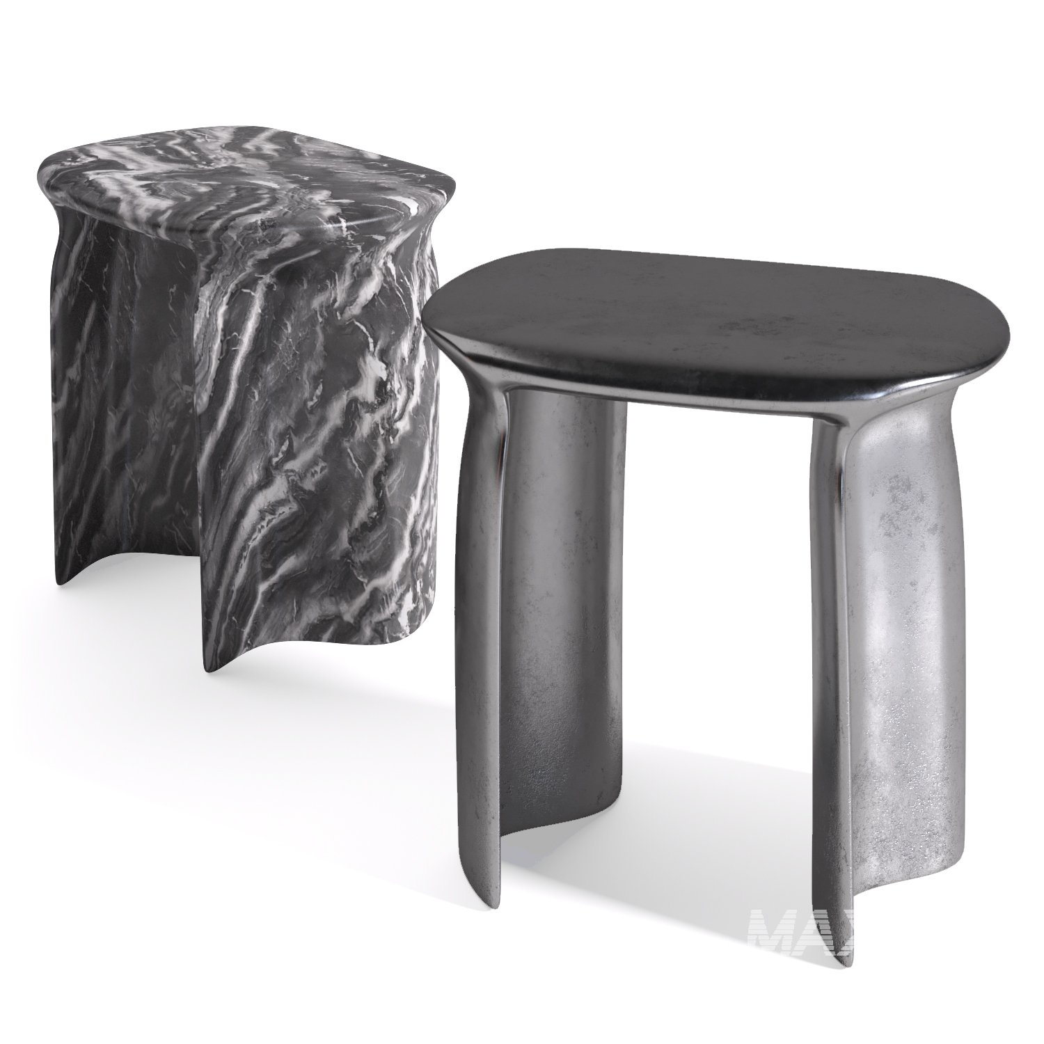Collection of side tables New Wave side table/stool by Lukas Cober. Elegant modern design with wave-shaped legs.