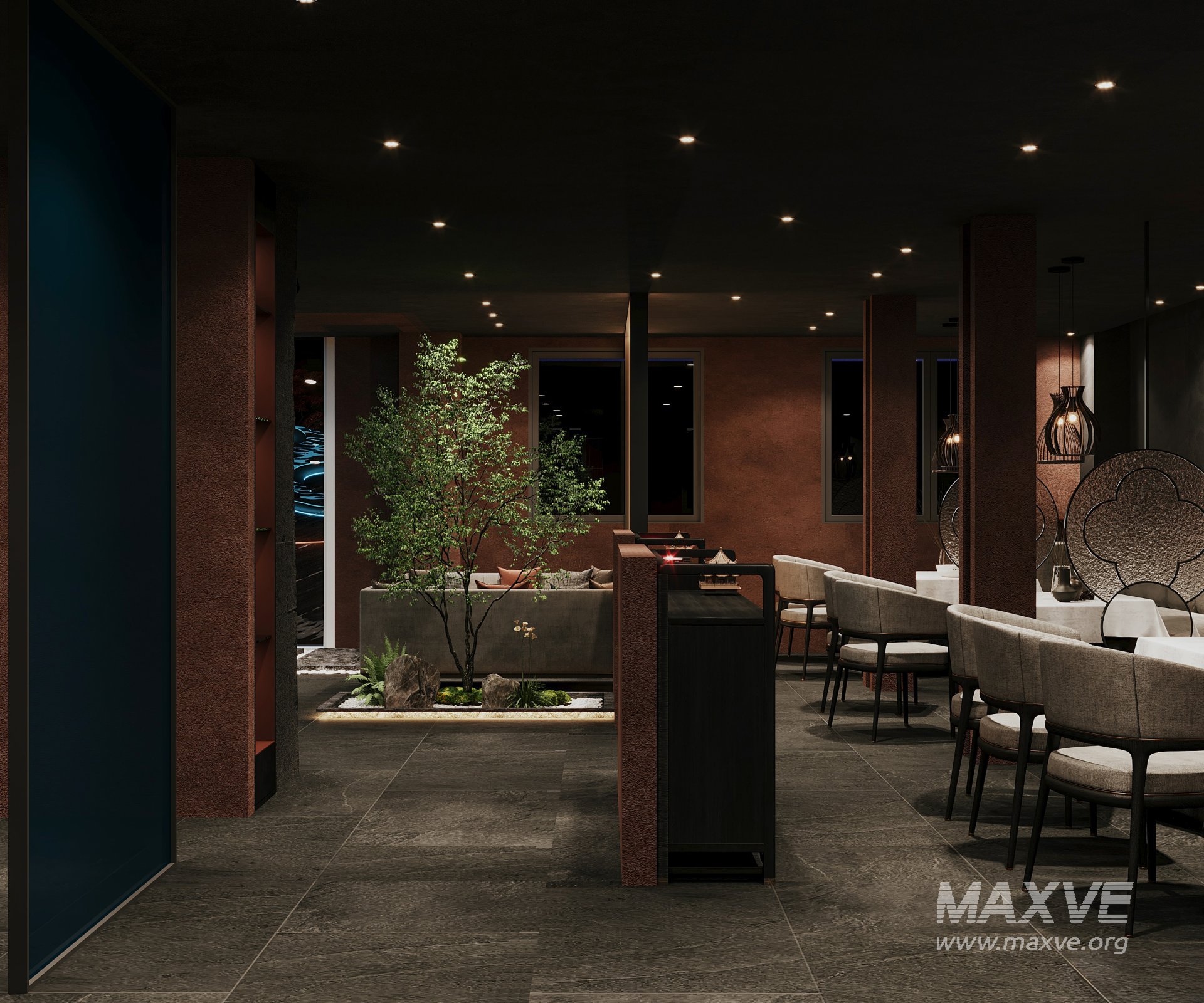 This Night Chinese restaurant 3D scene was built in 3ds Max 2021 and rendered using Corona. It includes clean geometry, proper scene organization, and is optimized for smooth rendering performance. The model setup follows standard practices, making it easy to import and adapt into a variety of workflows. Delivered in MAX format, it is well-suited for architectural visualization, concept development, or design presentation. Dominant color tones include: White tones, Beige tones, Silver tones, Gray tones.