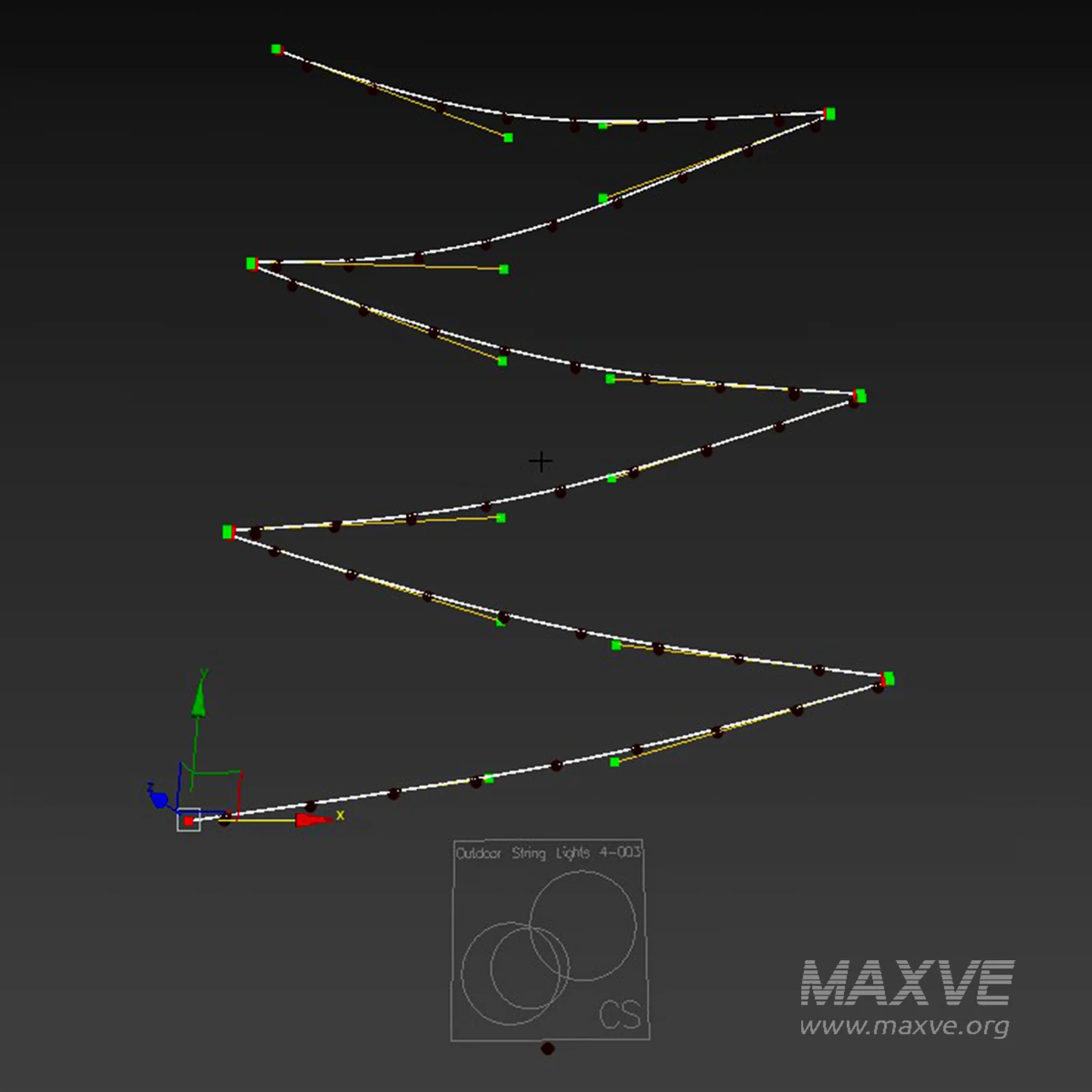 The lights were created using Corona Scatter, and the wires are edited through a spline.