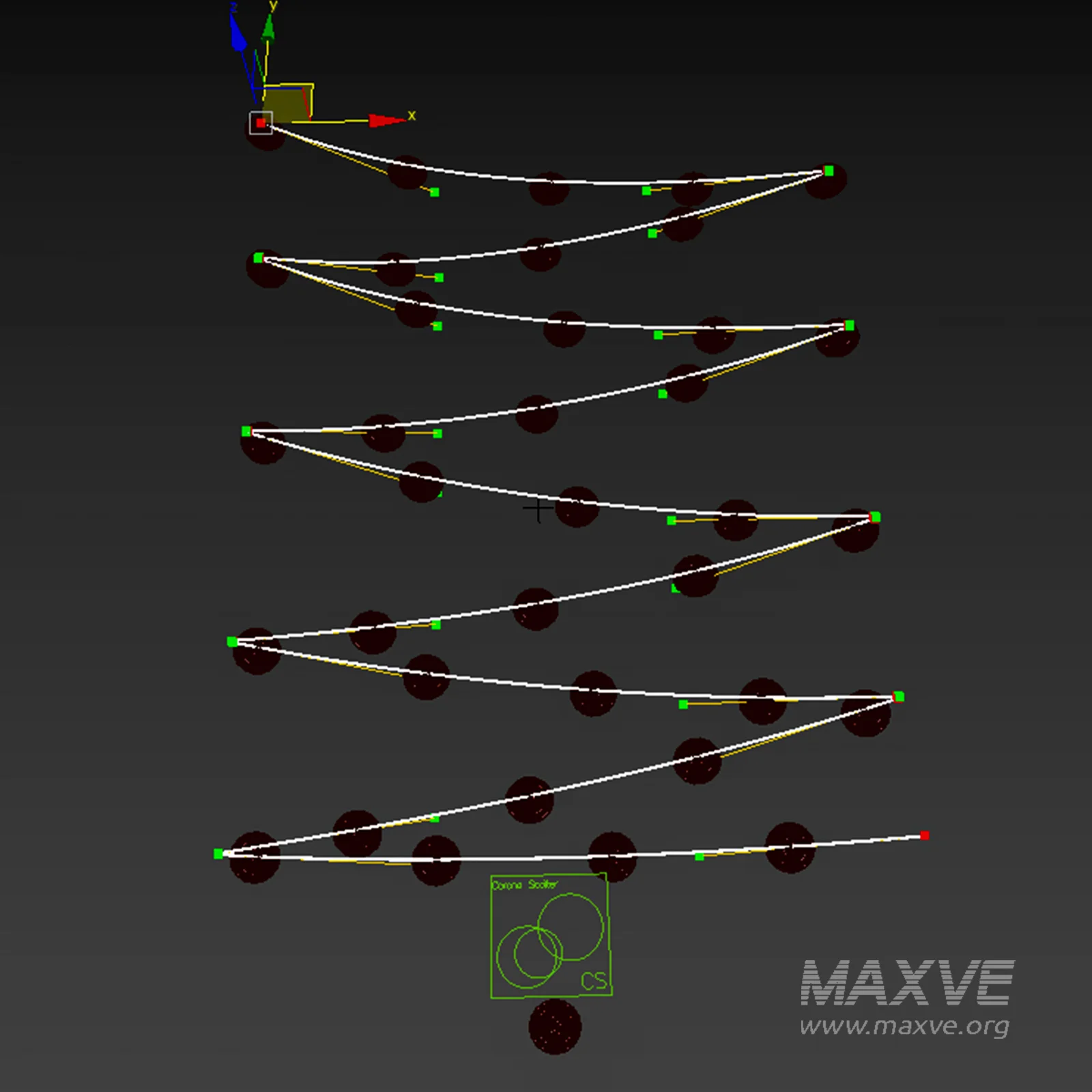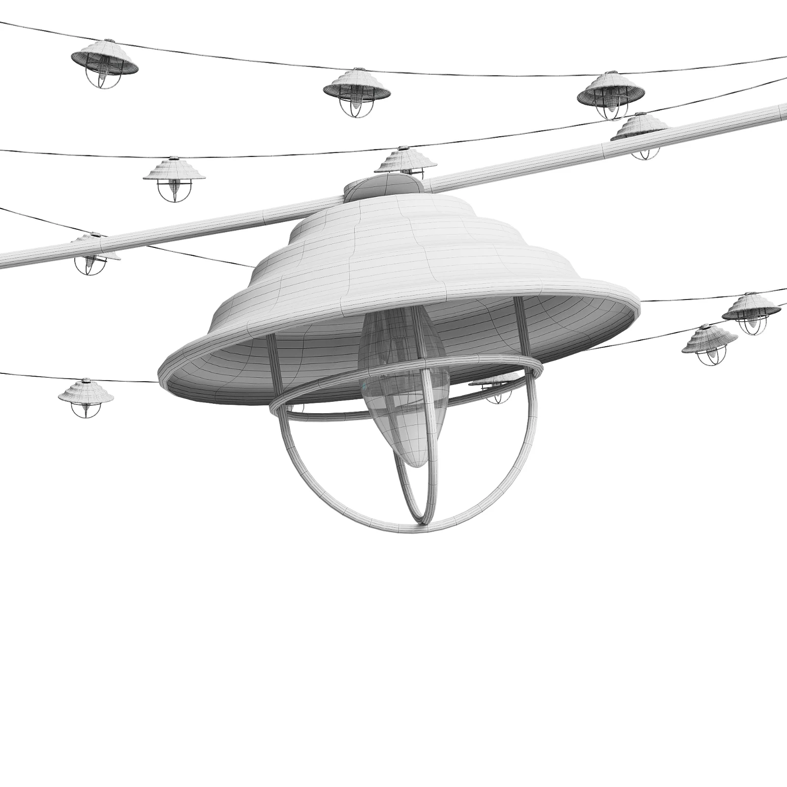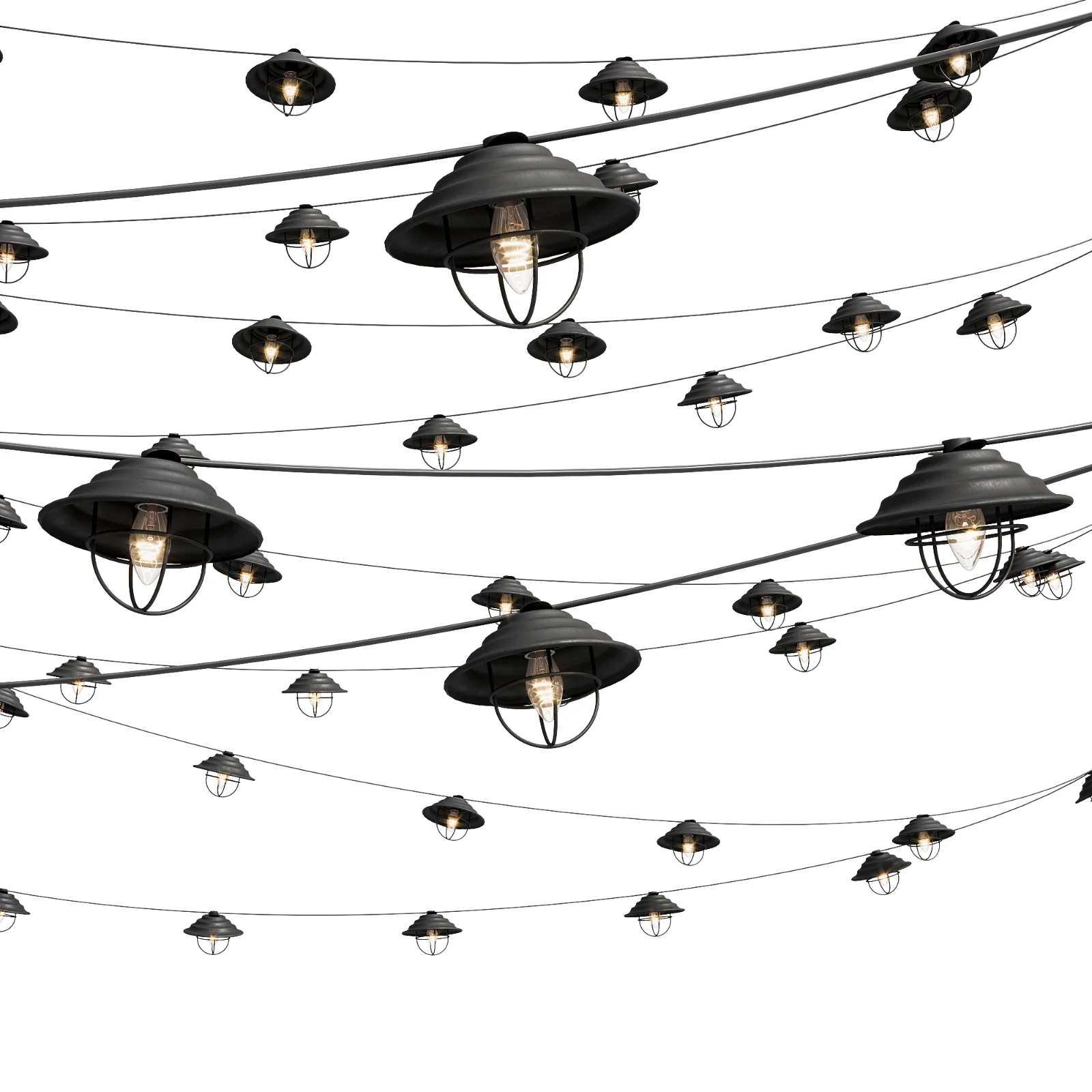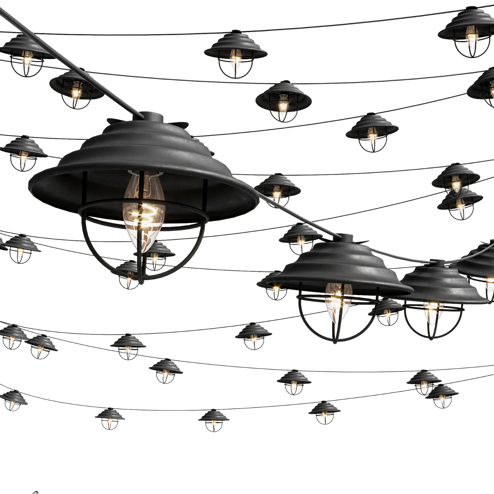 The lights were created using Corona Scatter, and the wires are edited through a spline.