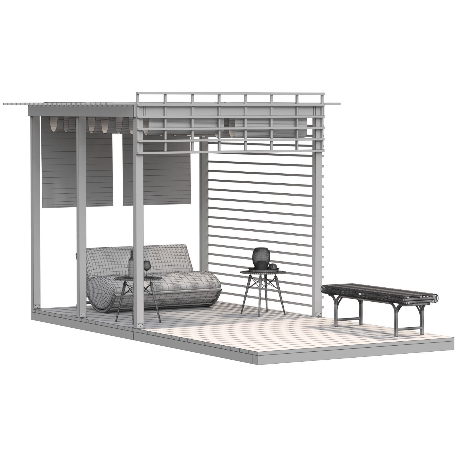 Pergola 3D Scene – Modern Outdoor Lounge and Dining Area