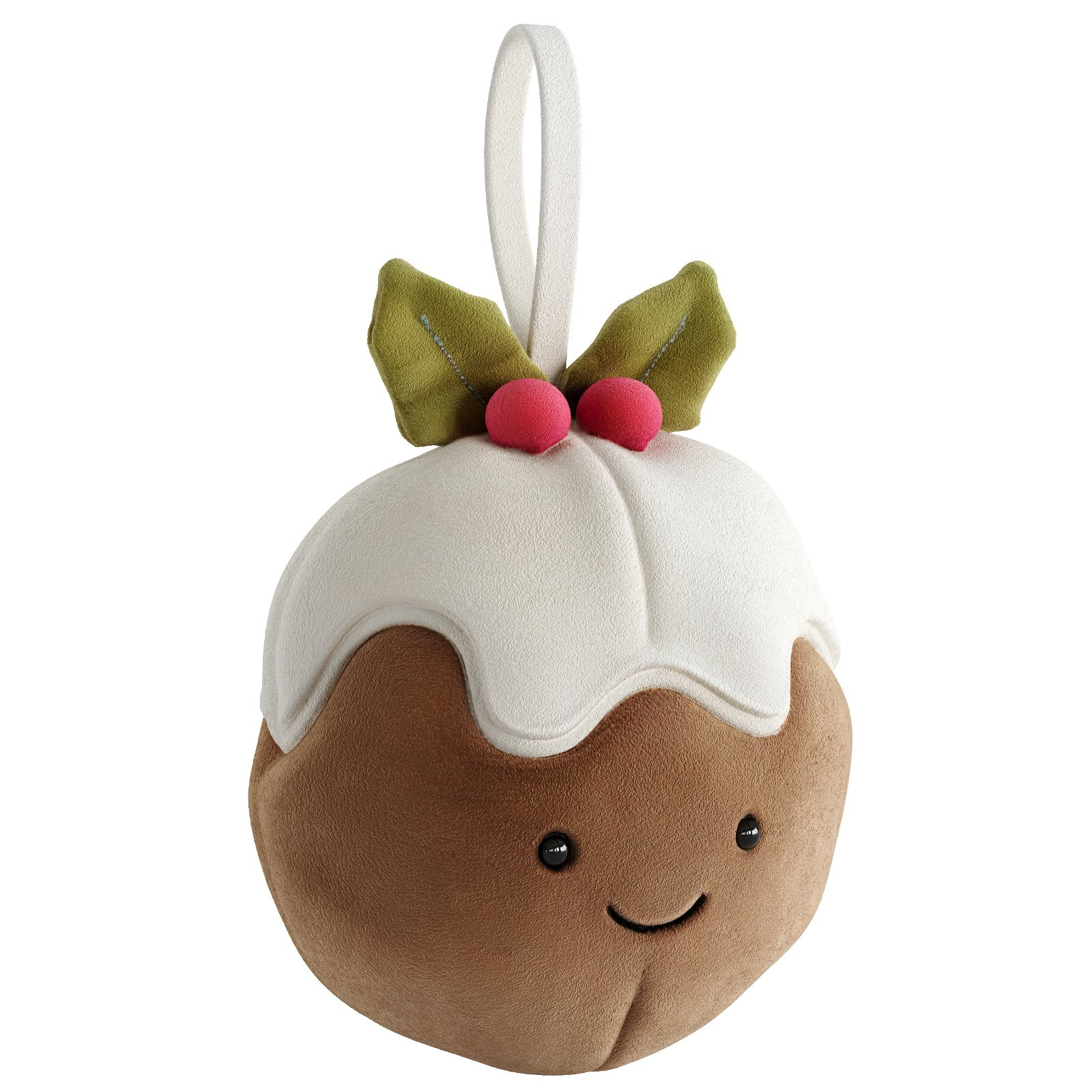 The set includes a plush ornament ball, a cute mitten character, a mistletoe toy, a snowman with a bow tie, and a festive pudding decoration.