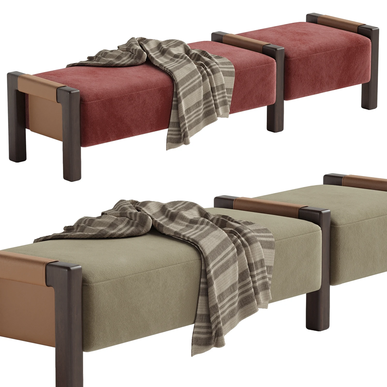 fabric, leather, wood | |