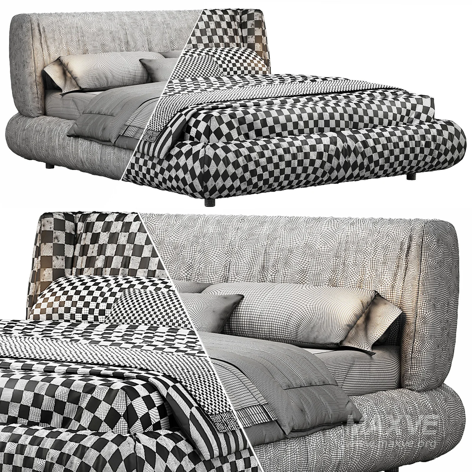 The 3D model of the bed was created using Marvelous Designer.
