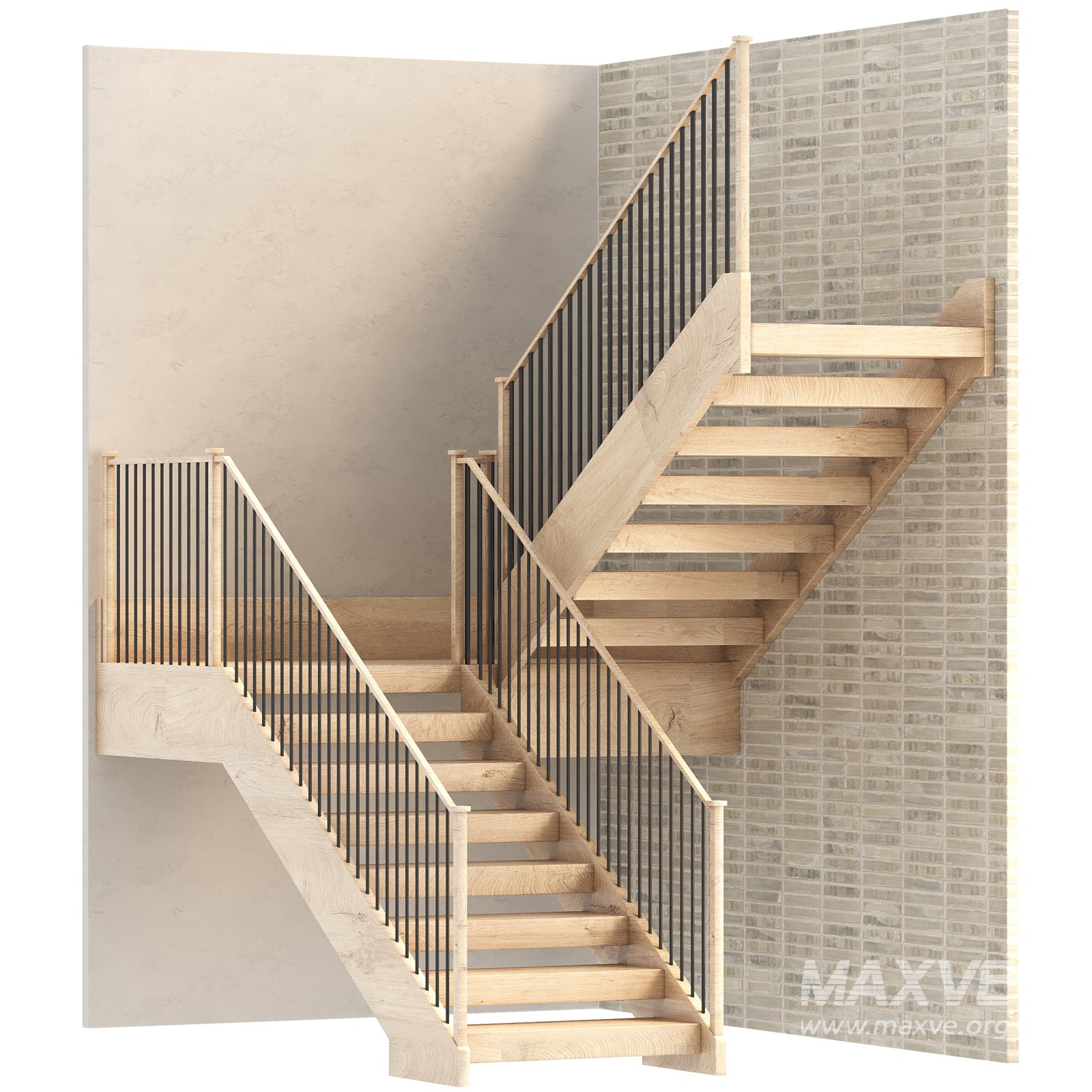 The realistic wood grain and structural detailing are optimized for both close-up renders and large-scale interior shots. This model is ideal for architectural presentations, modern home design projects, and visualization of multi-level spaces.