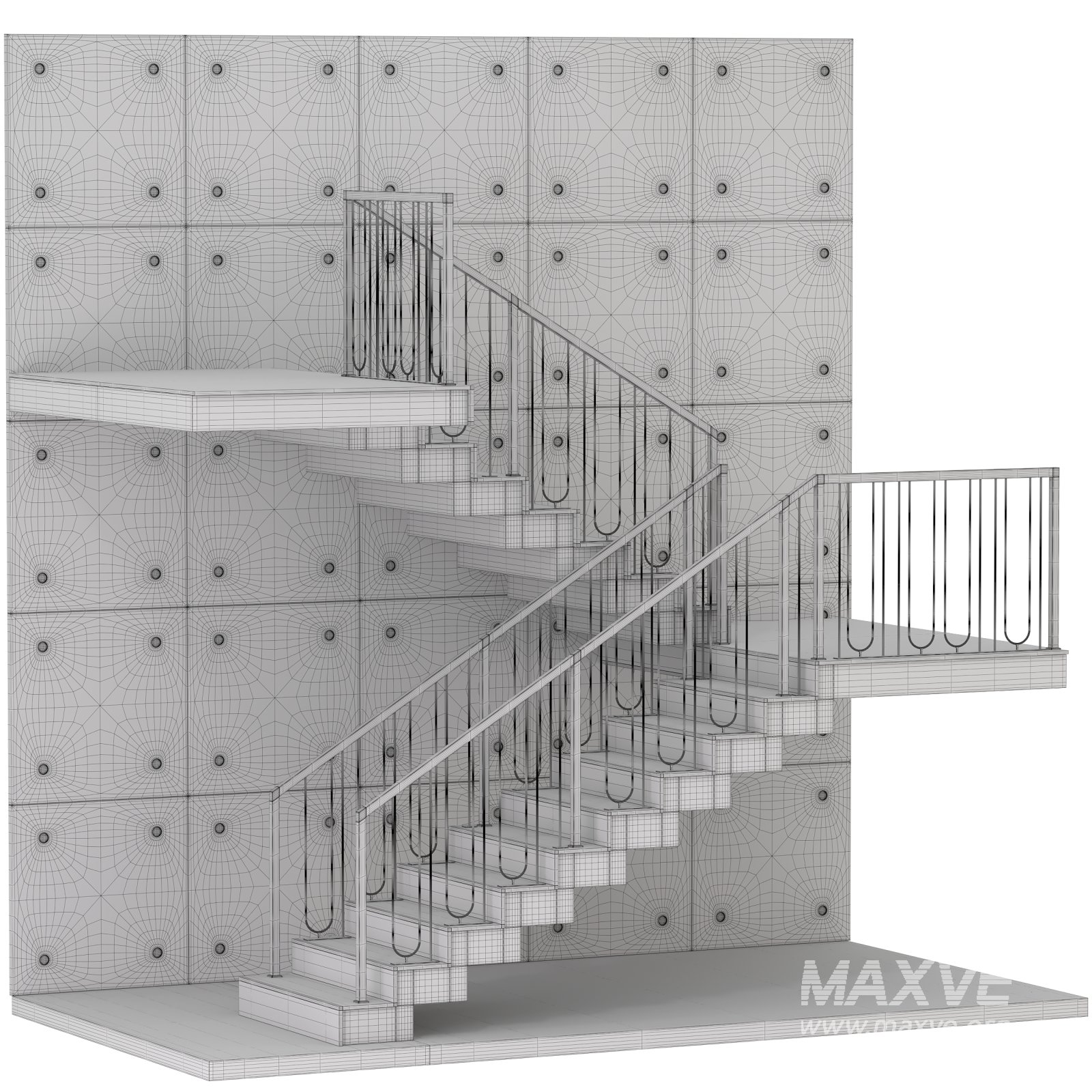 This model provides a high level of realism, suitable for both interior and architectural visualization projects. The precise modeling of each element—from the elegant vertical railing details to the proportionate step geometry—ensures accurate representation in any 3D scene.