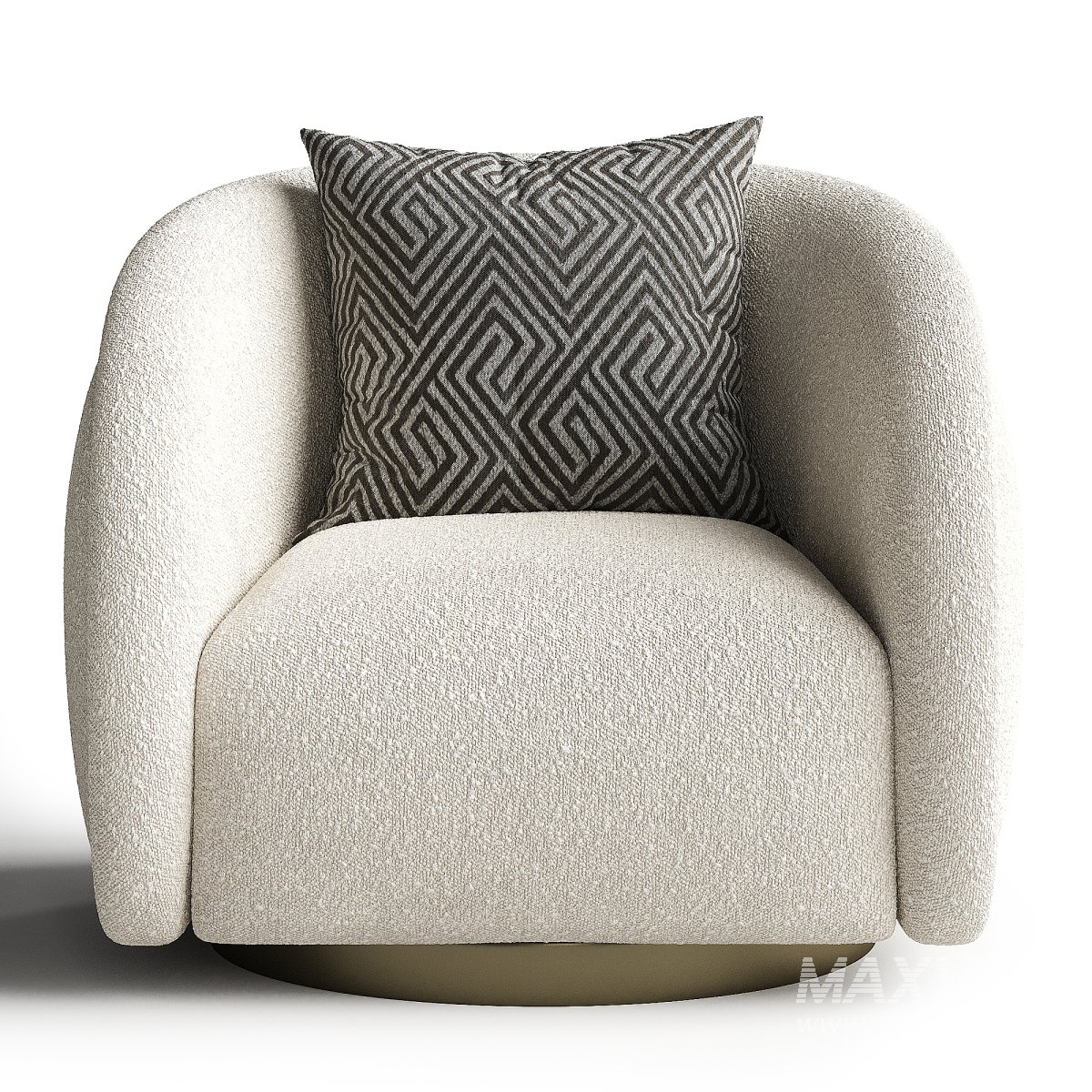 Swivel Armchair In Boucle Fabrics Brushed Brass Base