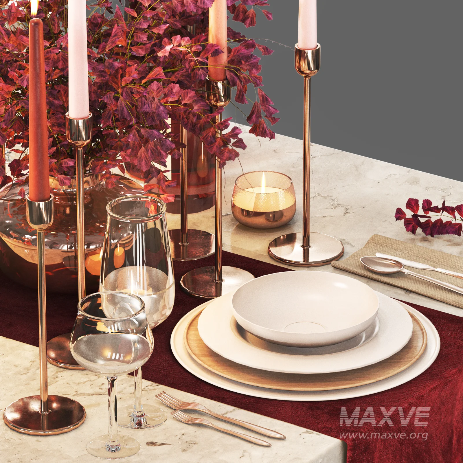 Name: Tableware4 , table serving design with dishes, glasses,cutlery,bouquet and candles...