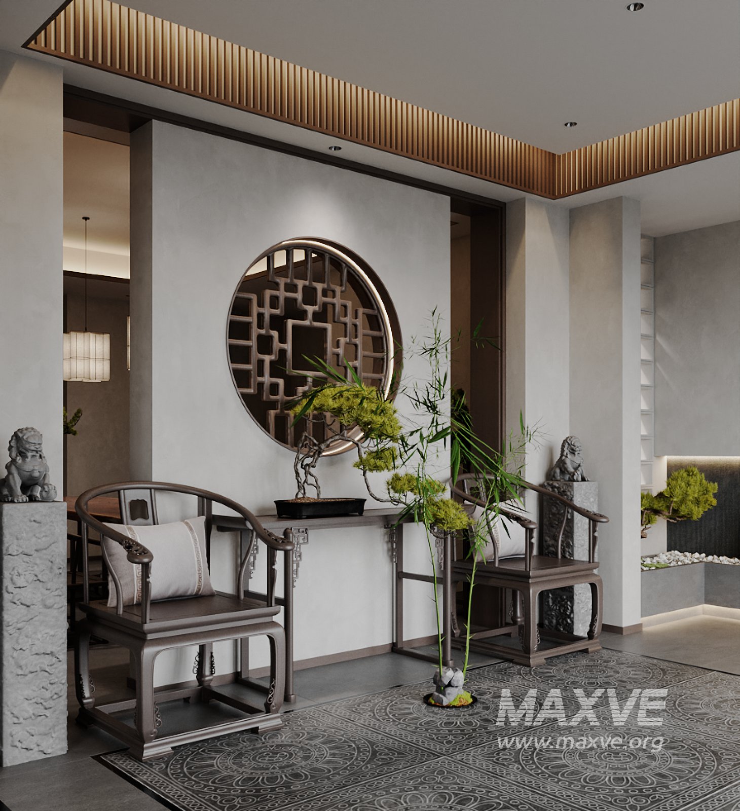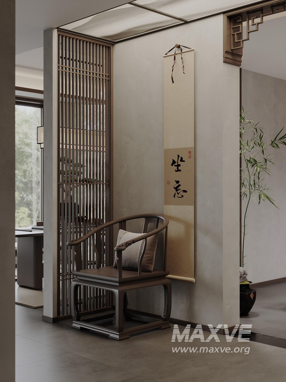 This fully textured interior scene with natural light setup is ready to render with Corona Renderer for 3D Studio MAX. This file does not have any type of protection. You can reuse the scene, the render settings, the lights, the materials, but above all, you can learn from the file by moving inside the project, observing how the light was created and handled, how materials are developed, what role each texture plays within them, and the values used in every single option.