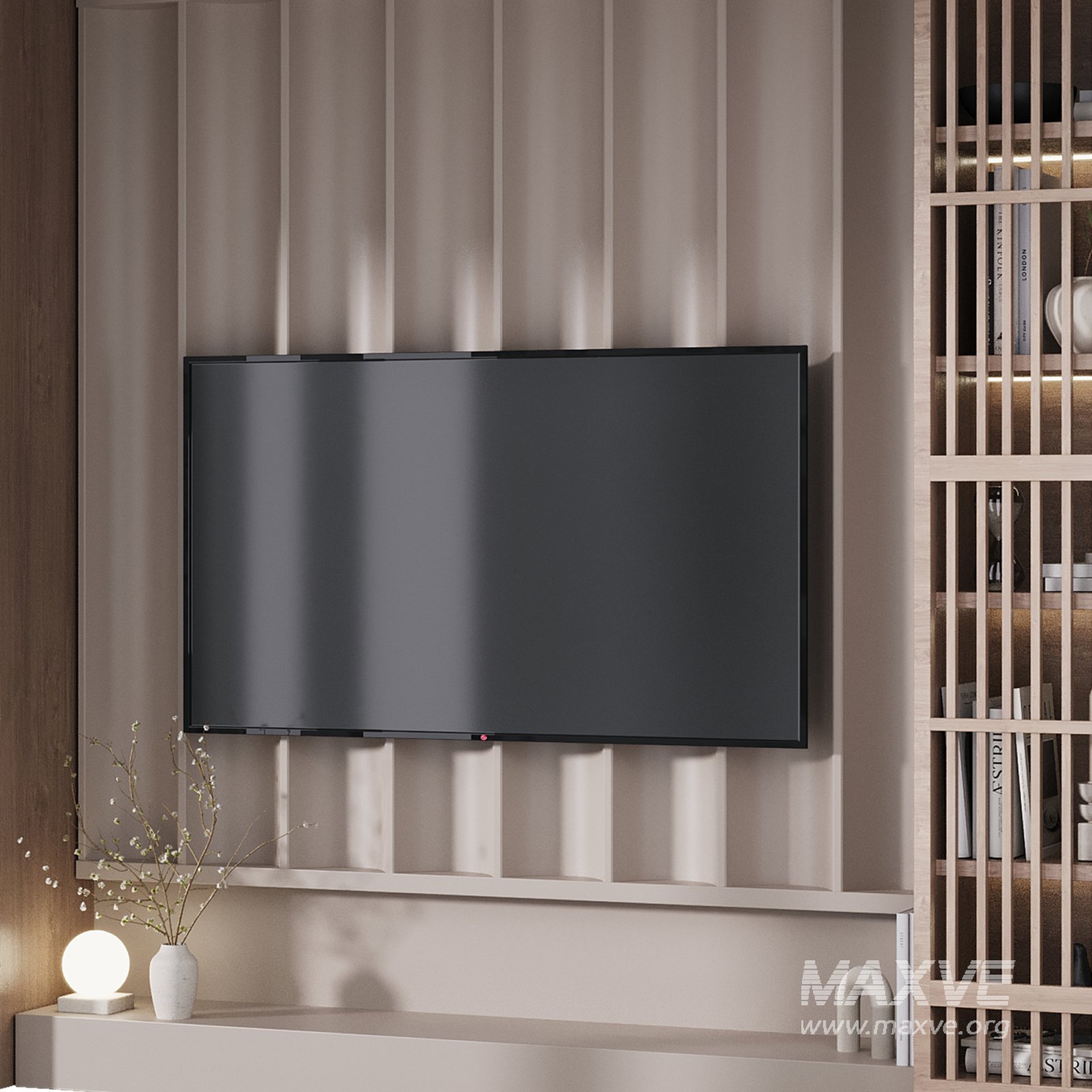 TV, wall, wood, Light, decorative, Shelf, book , plant