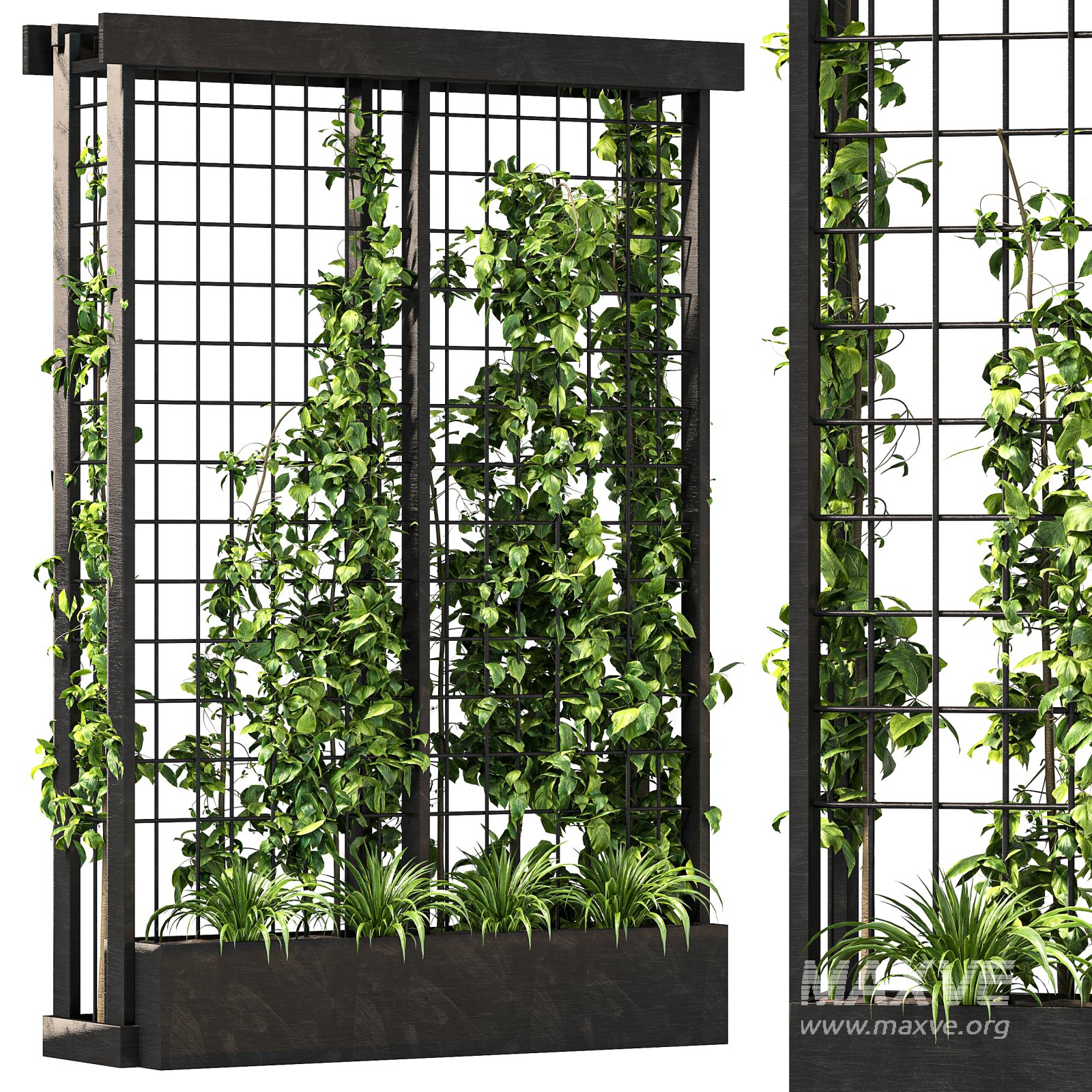 The Vertical Garden Trellis 02 is a modern and elegant vertical planting solution designed to bring a touch of greenery and natural charm to interior and exterior spaces. Featuring a minimalist metal trellis structure combined with lush, realistic organic vegetation, this model perfectly balances industrial aesthetics with nature-inspired design.