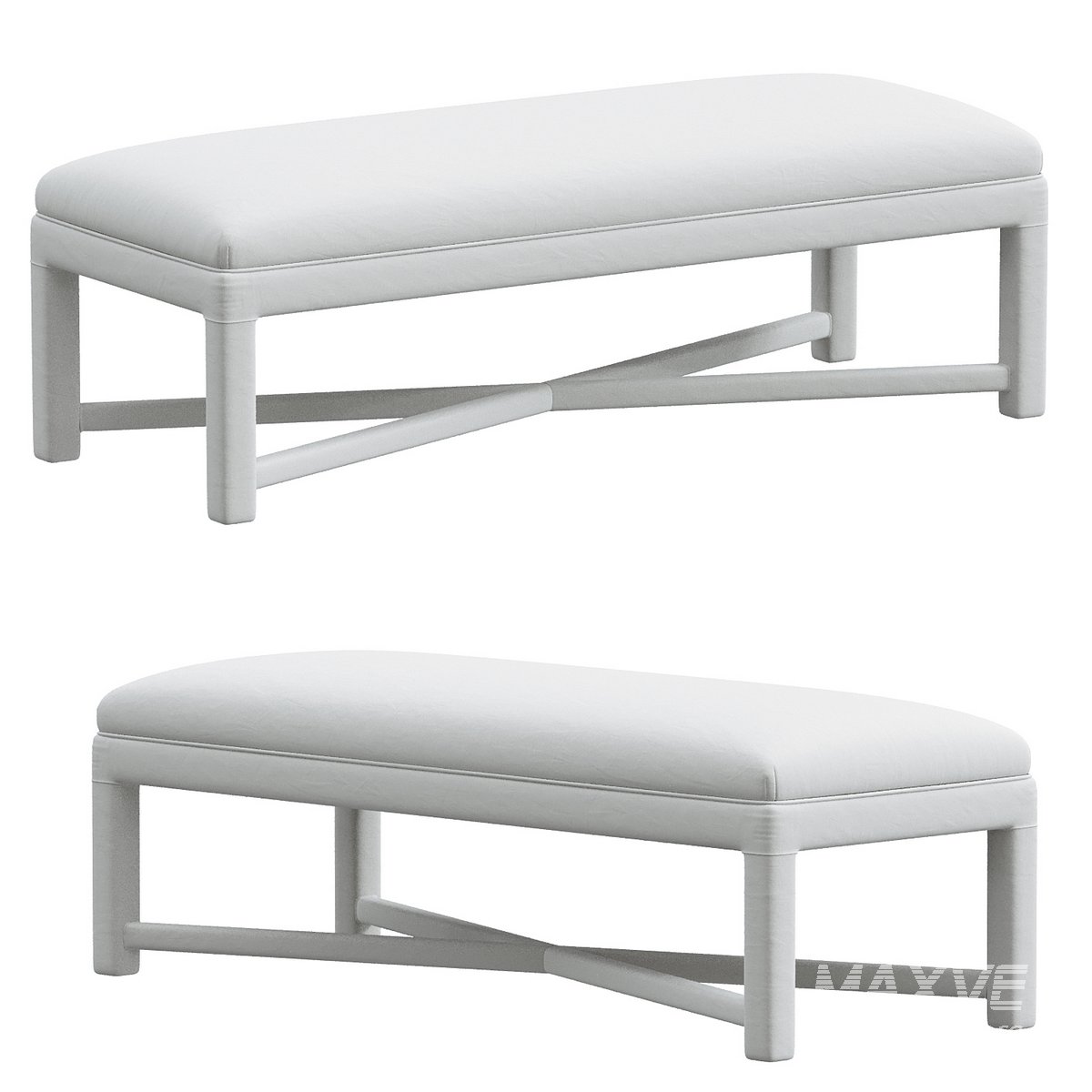 Vintage Parsons Upholstered Bench With Stretcher