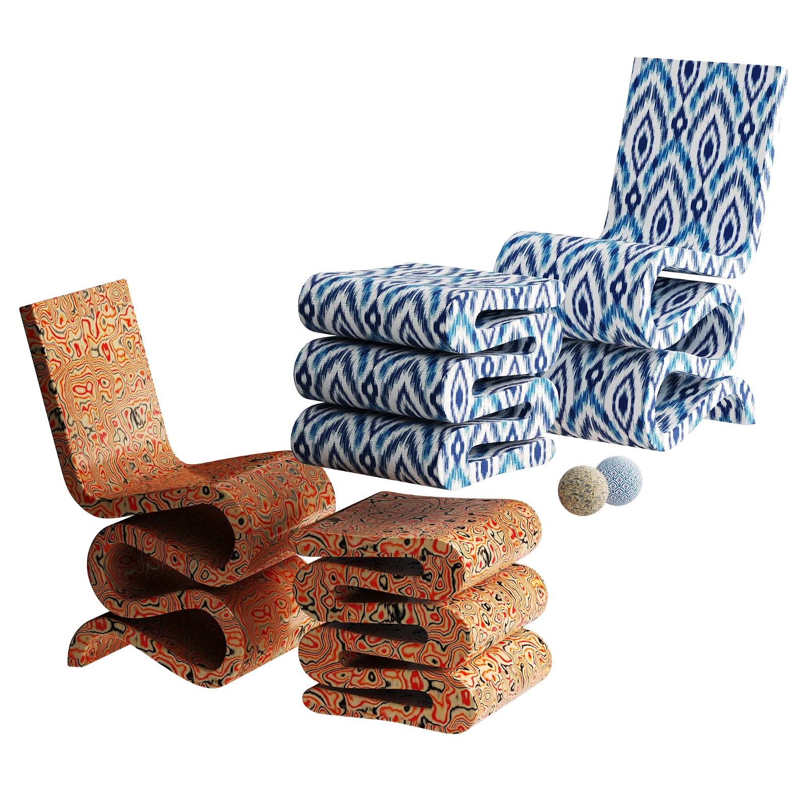 Wiggle Side Chair and Stool