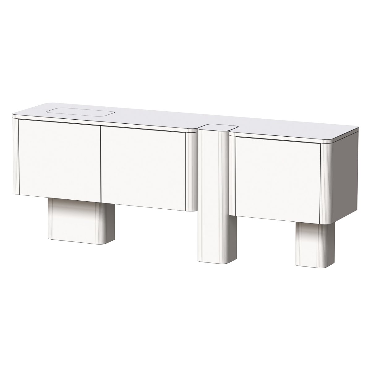 The unexpected dynamism of the silhouette is generated by the encounter of different layers of materials.? The monolithic legs and generous sizes make Erice D a sideboard with an undeniable sculptural style.?
