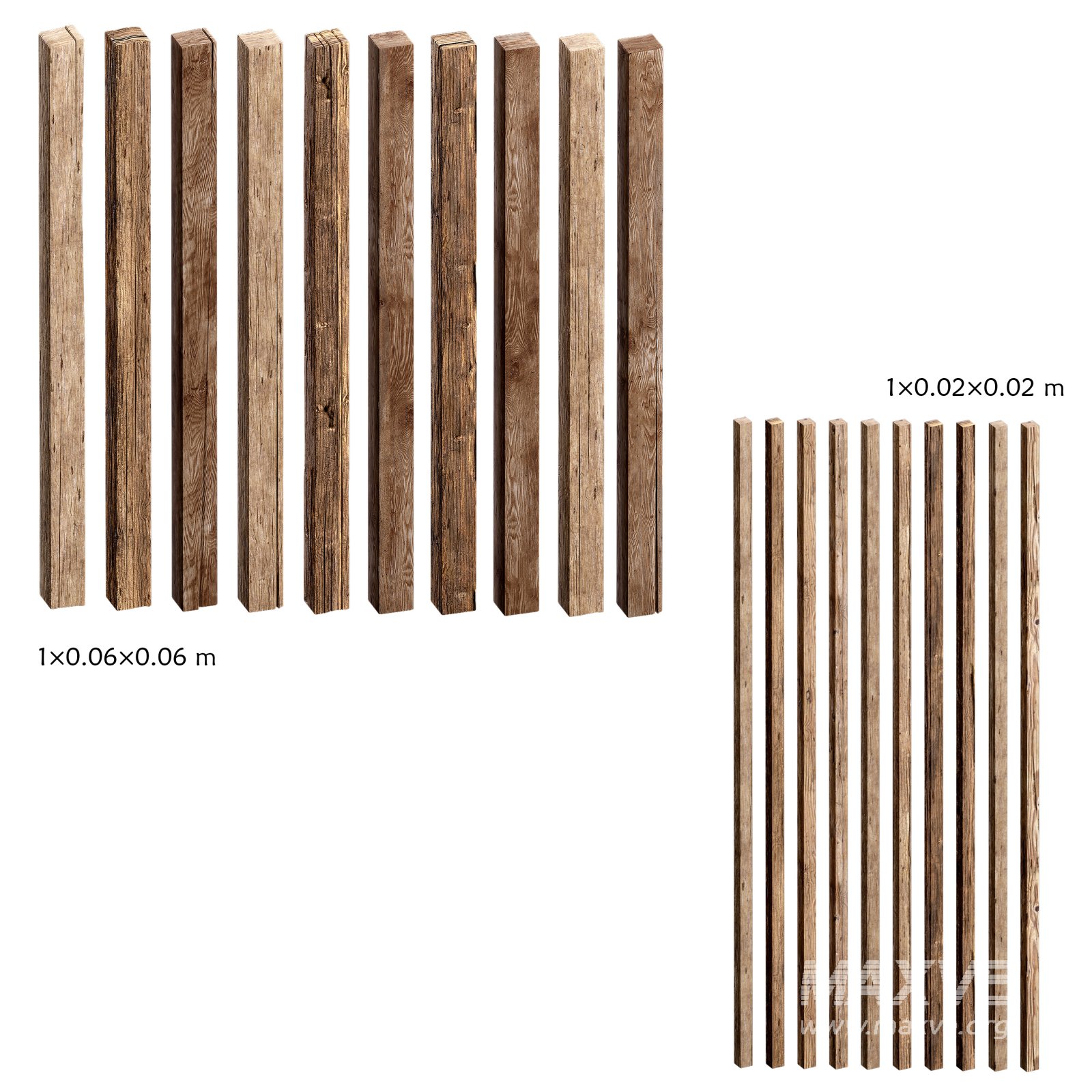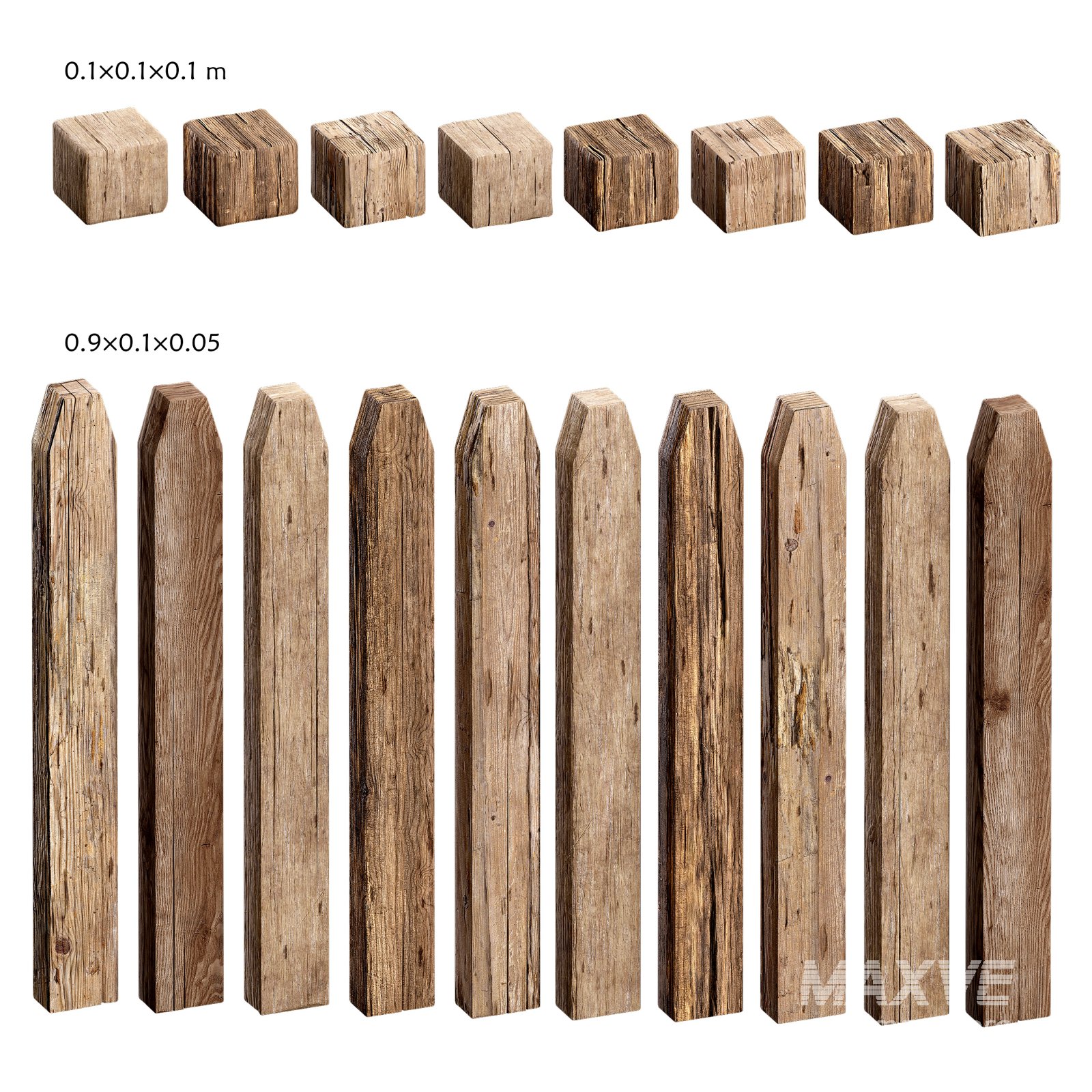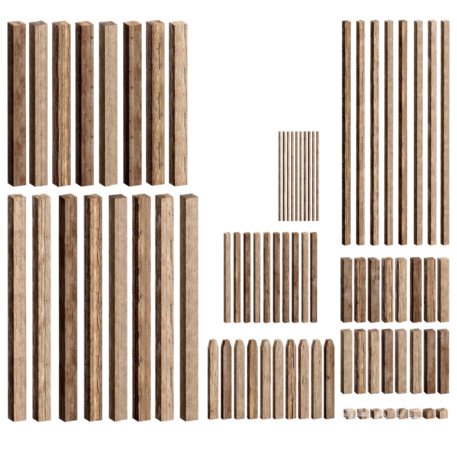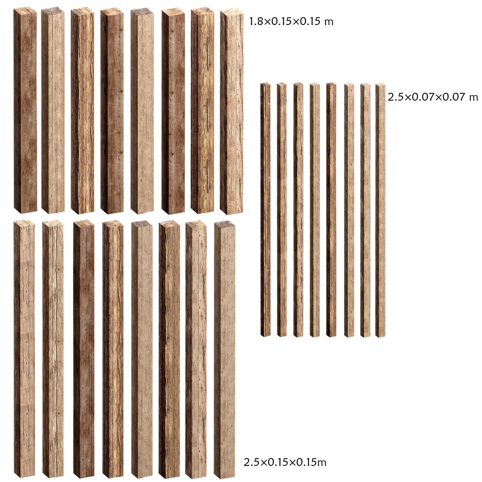 A versatile collection of wooden planks and structural beams, ideal for building realistic environments ranging from rustic cabins to medieval towns or modern construction sites.